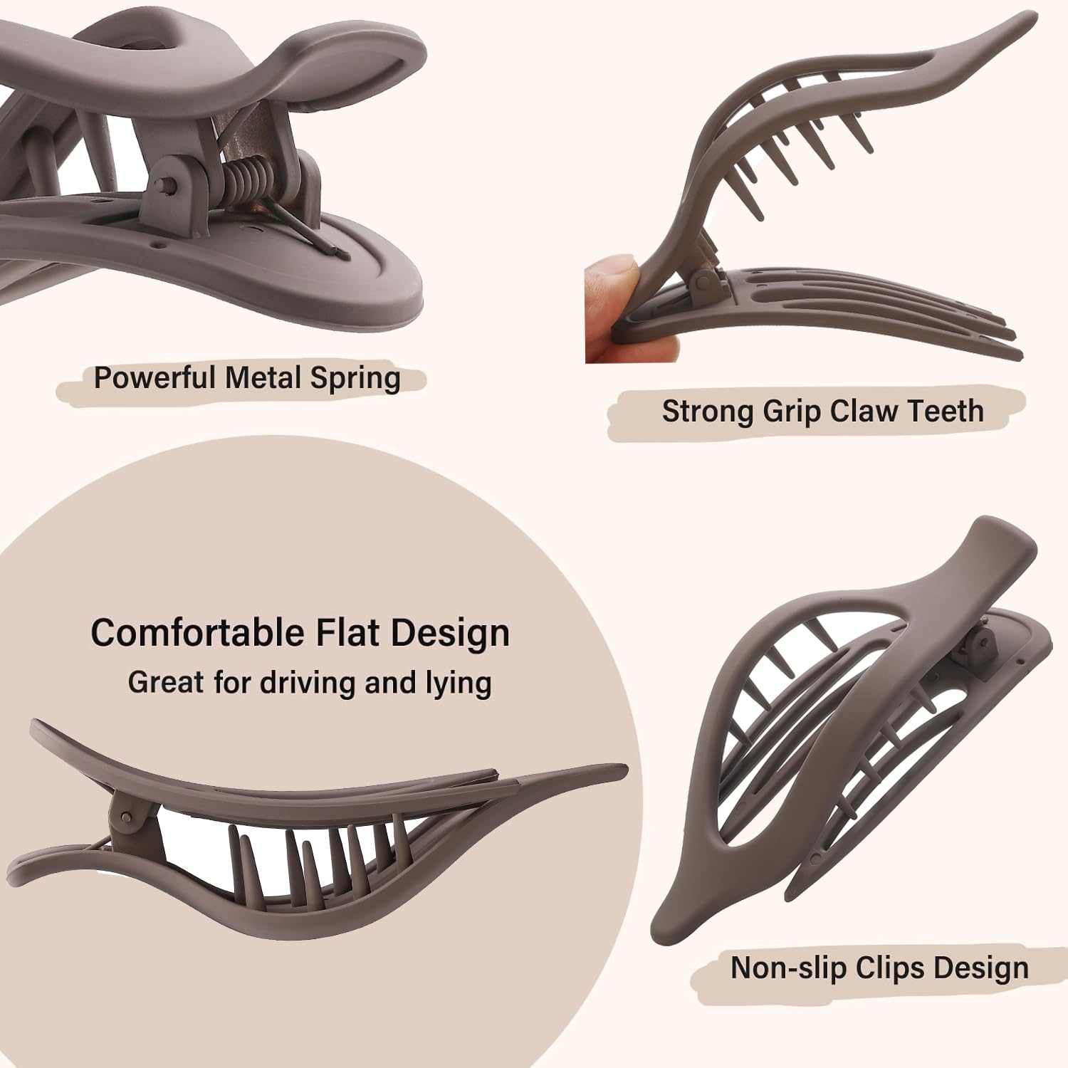 - Comfortable- Our claw clips lay smoothly against your head for pressure-free comfort , suitable for many occasions such as leaning back in a chair, doing Yoga, Driving and simply relaxing. The surface of these claw clips are made of durable matte material with beautiful color, light weight and comfortable to wear for a long time