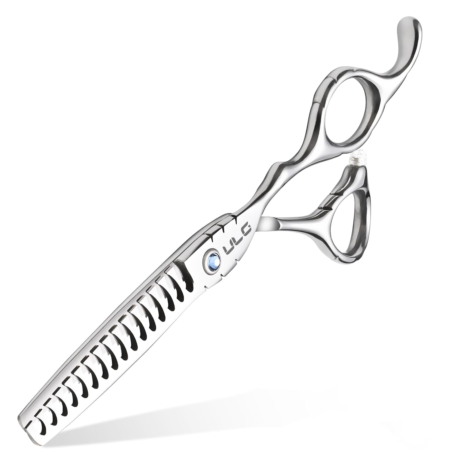 ULG Hair Thinning Scissors 6.7” Shark Series 100% Japanese Stainless Steel, Offset Handle, 16-Tooth Fishbone Chunker 45% Hair Removal, Professional Barber Layering Shears for Salon & Home Hair Styling