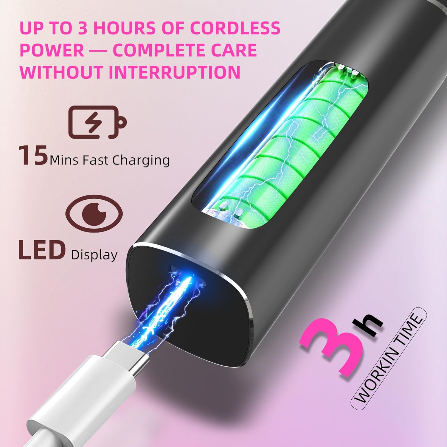 - USB-Rechargeable & High Capacity Battery: Built-in 1800mAh battery,after a full charge, at last 2.5 hours(1 speed), charges via included USB cable for convenient home/travel use.This foot callus remover is completely wireless. Convenient and flexible for different scenarios