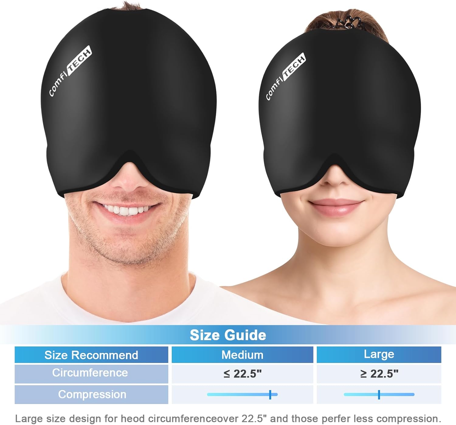 - 20% More Gel Coverage - This upgraded head ice wrap extends from forehead to back for near full coverage. Its flexible 360° design ensures comfort, while the ponytail hole keeps hair cool and comfortable