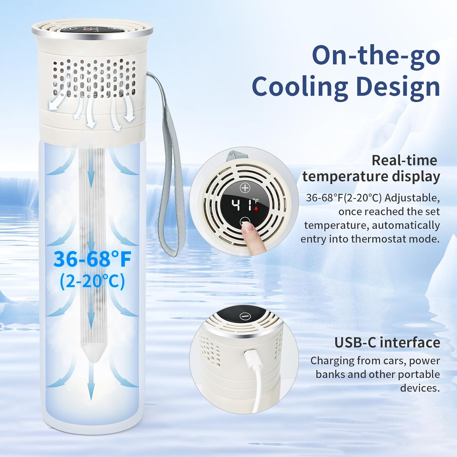 - Insulin Travel Case with 2 Cooling Methods: 1) USB-powered cooling lid provides rapid cooling, while the cooling rod distributes cold air evenly for all-around temperature control. 2) Freeze the blue ice gel packs for 5–8 hours before travel. Place them with medications in the insulated cup to maintain 36–72°F for 24 hours. (Note: If ice gel packs are over-frozen, briefly warm them in lukewarm water to avoid medication damage.)