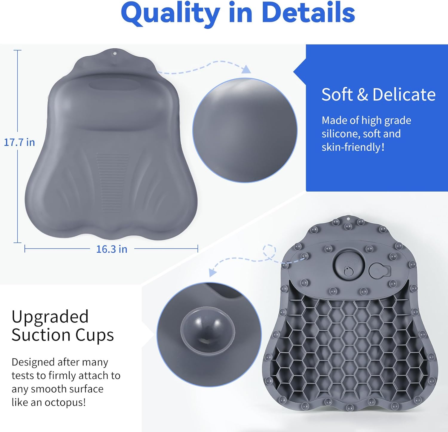 - [34 UPDATED STRONG SUCTION CUPS]: The back of the tub pillow for bathtub is designed with 34 small deepened suction cups, this is our team after many tests to design this deepened suction cups, the suction is stronger and more stable, the luxury bath pillow can be firmly adsorbed on any smooth surfaces, no need to worry about the movement of the bathtub pillow!
