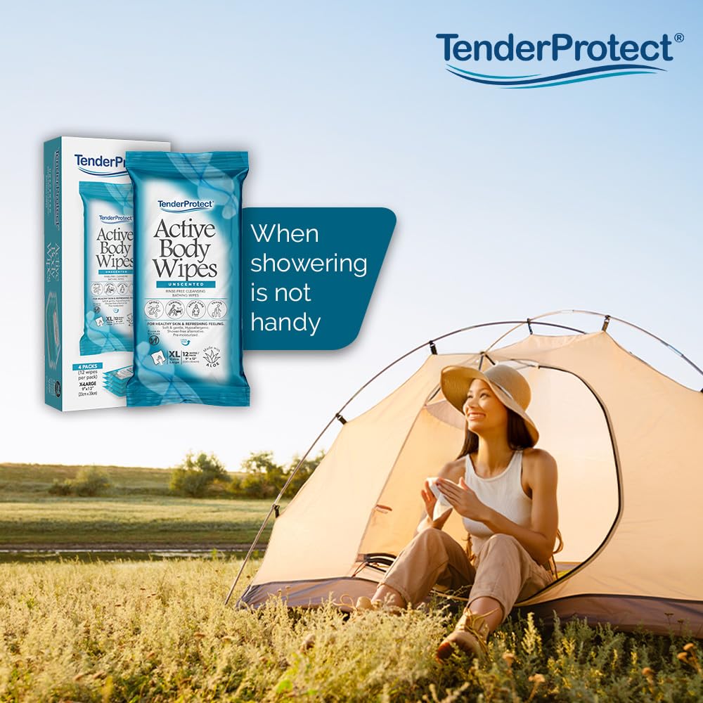 Active Body Wipes, XL Rinse-Free Shower Wipe for Adults, 9" x 12" Extra Large, Aloe, No Rinse Bath Wash Cloth - Gym, Sports, Travel, Camping, Elderly Care, Portable 12 Ct Packs (48 ct)