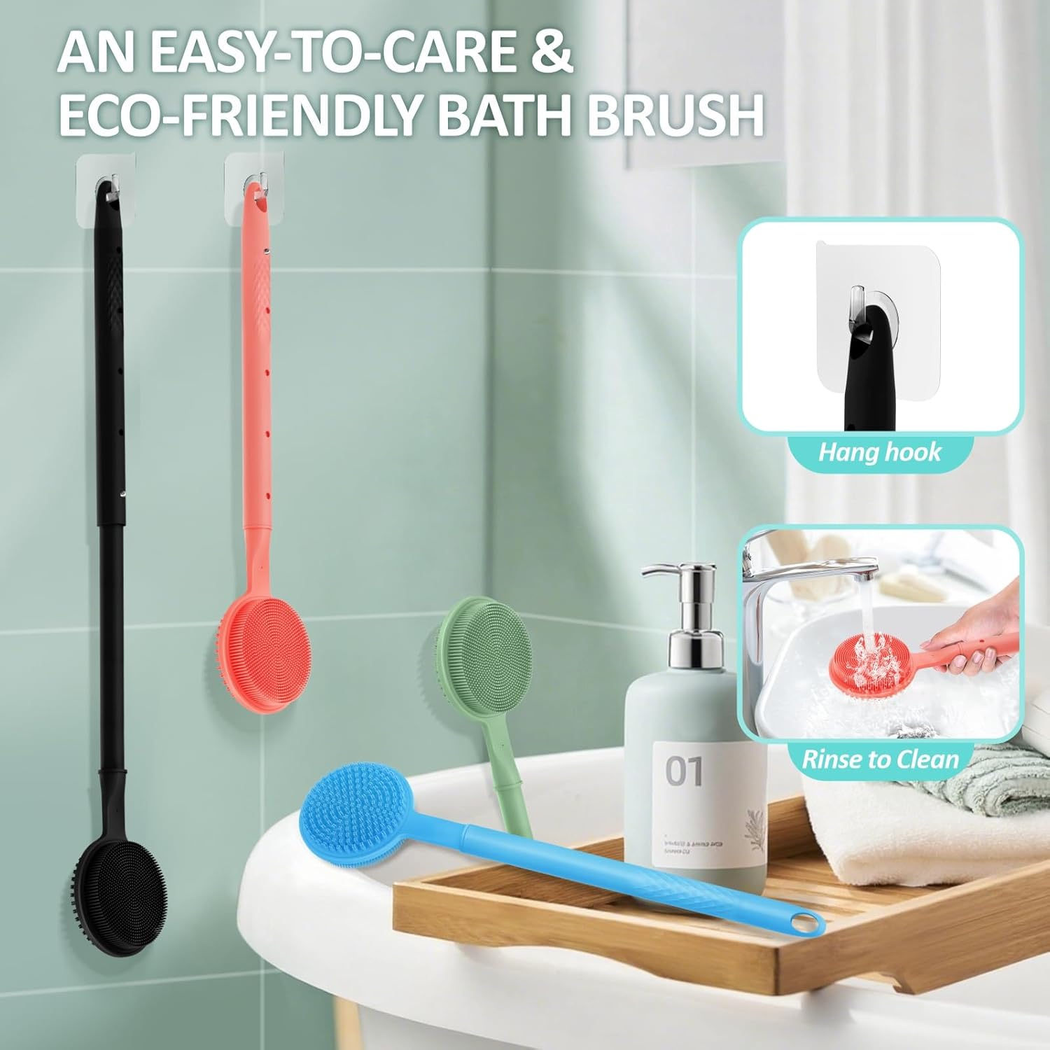 - 【Premium Safe Material】Back scrubber's brush head is made of food-grade silicone. No molding, BPA-Free, super-durable, odor-free and non-toxic. Brush holder is ABS material, strong and sturdy holding, No-bending as other handle made of soft silicone or plastic.
