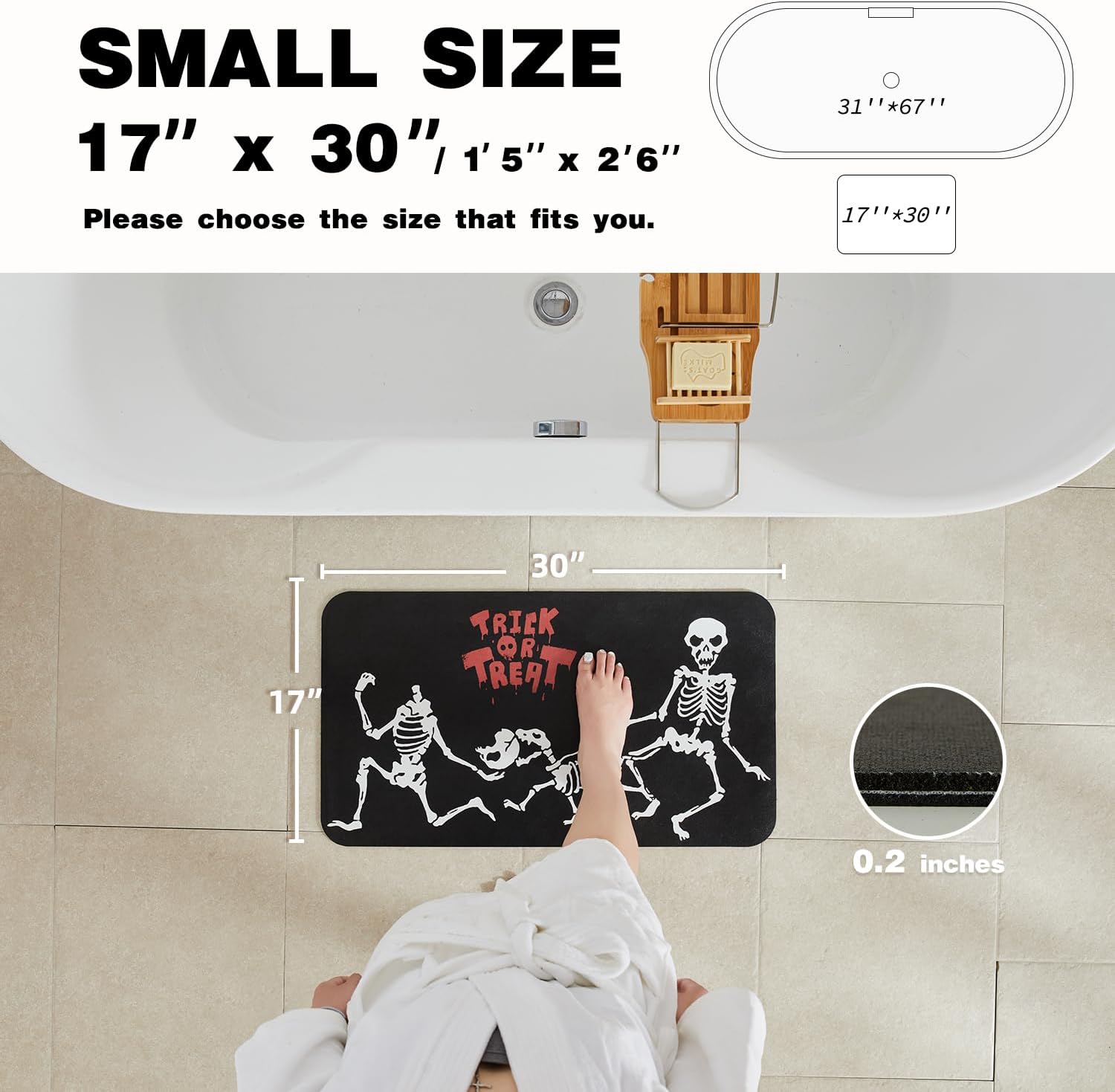 - Super Absorbing & Quick Drying: Our halloween bathroom mat absorbs water instantly as you step out of the shower or bathtub. And it completely dry in just a few minutes, with no watermarks left behind. Always keep your floor stays clean and dry