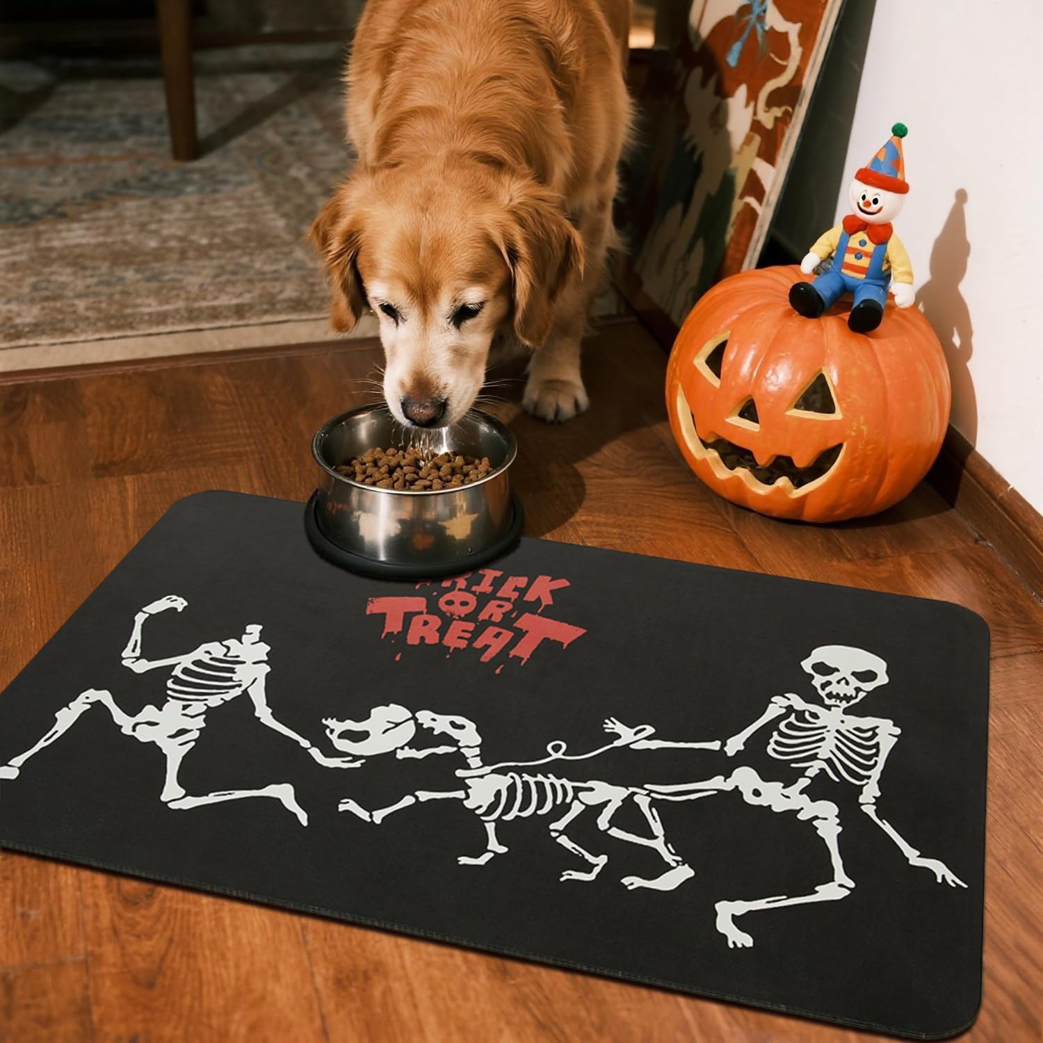 Halloween Bath Mat, Thin Halloween Bathroom Rug Non Slip Quick Dry Skeleton Bath Mat Fits Under Door Thin Floor Mat Halloween Decor, 17''x30'', Skull Treat or Trick Black