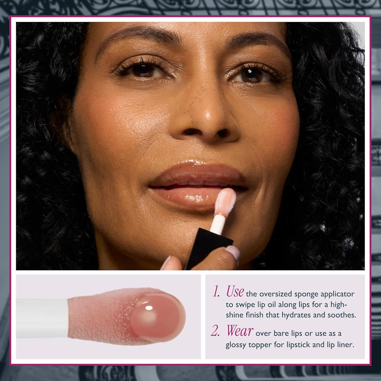 - HOW TO USE: Use the oversized sponge applicator to swipe lip oil along lips for a high-shine finish that hydrates and soothes. Wear over bare lips or use as a glossy topper for lipstick and lip liner.