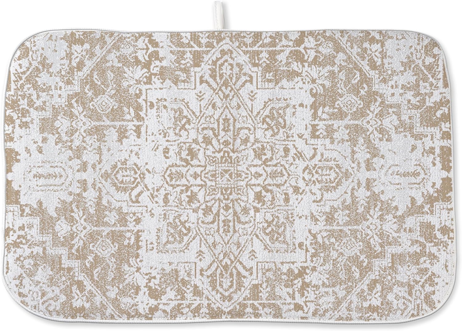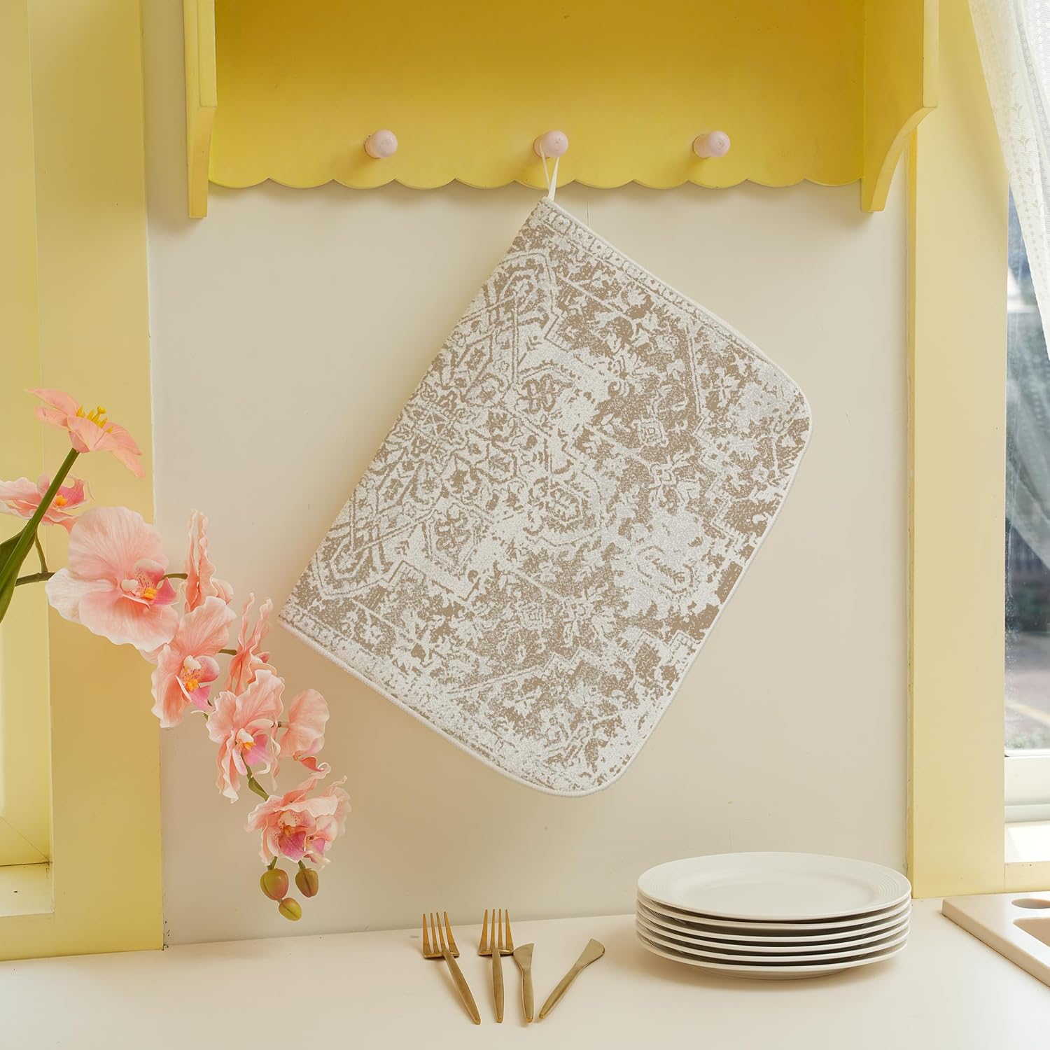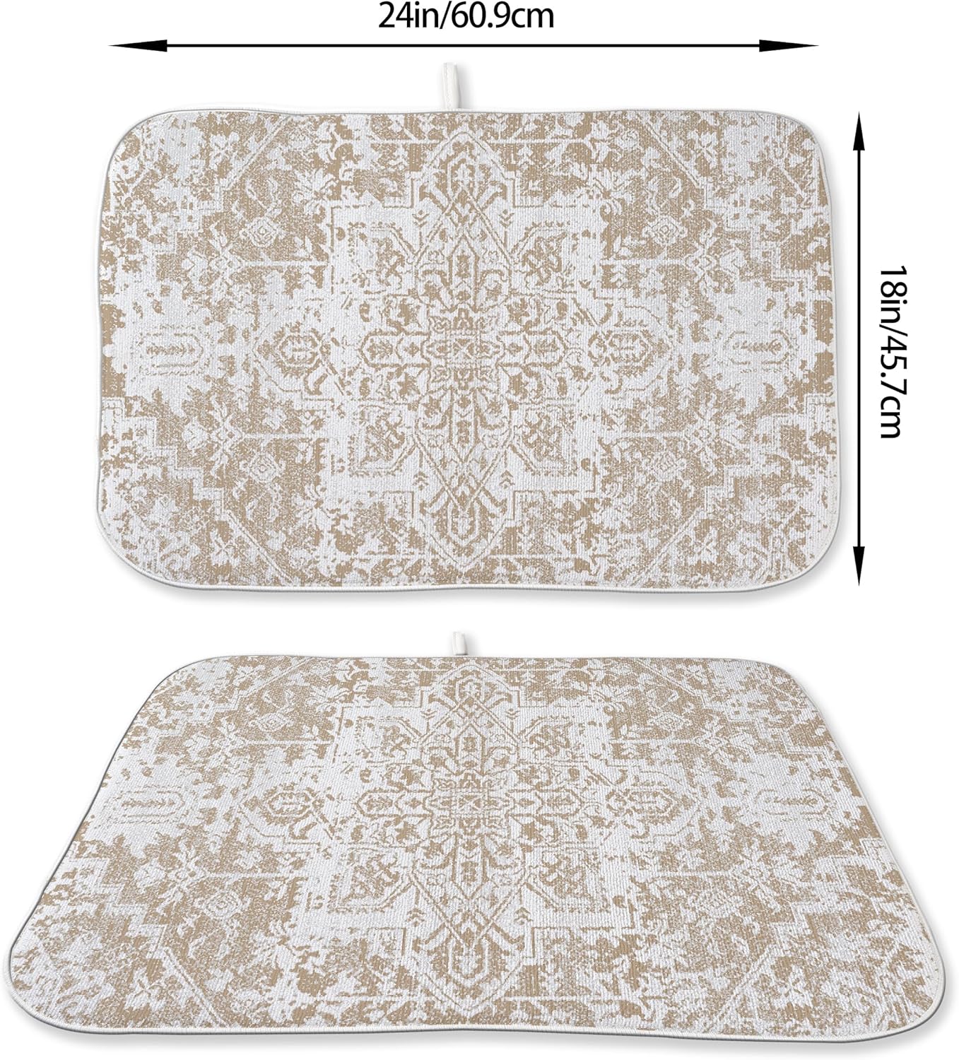 Brown Dish Drying Mat for Kitchen Counter, 18x24 Inch Coffe Boho Style Absorbent Dish Drying Pad Heat Resistant Mat Coffee Bar Mat Dish Drainer Rack Mat