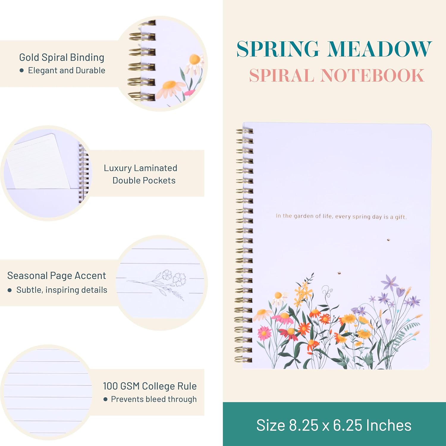 Happy Hoos® Aesthetic Spiral Notebook - 6.25" x 8.25" College Ruled Journal Notebook - Hard Cover Writing Journal for Work, School, Travel, More - Floral Notebook 8 Seasonal Designs (Spring Meadow)
