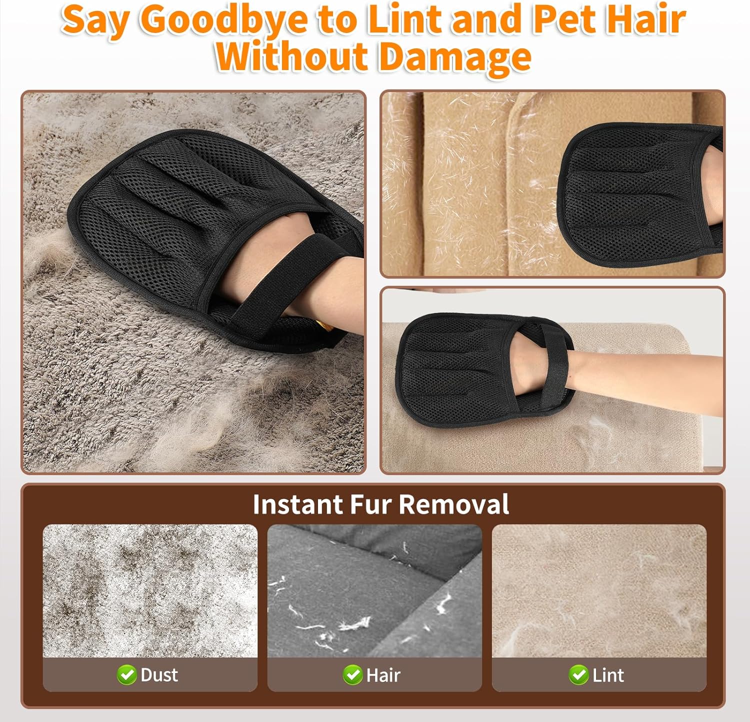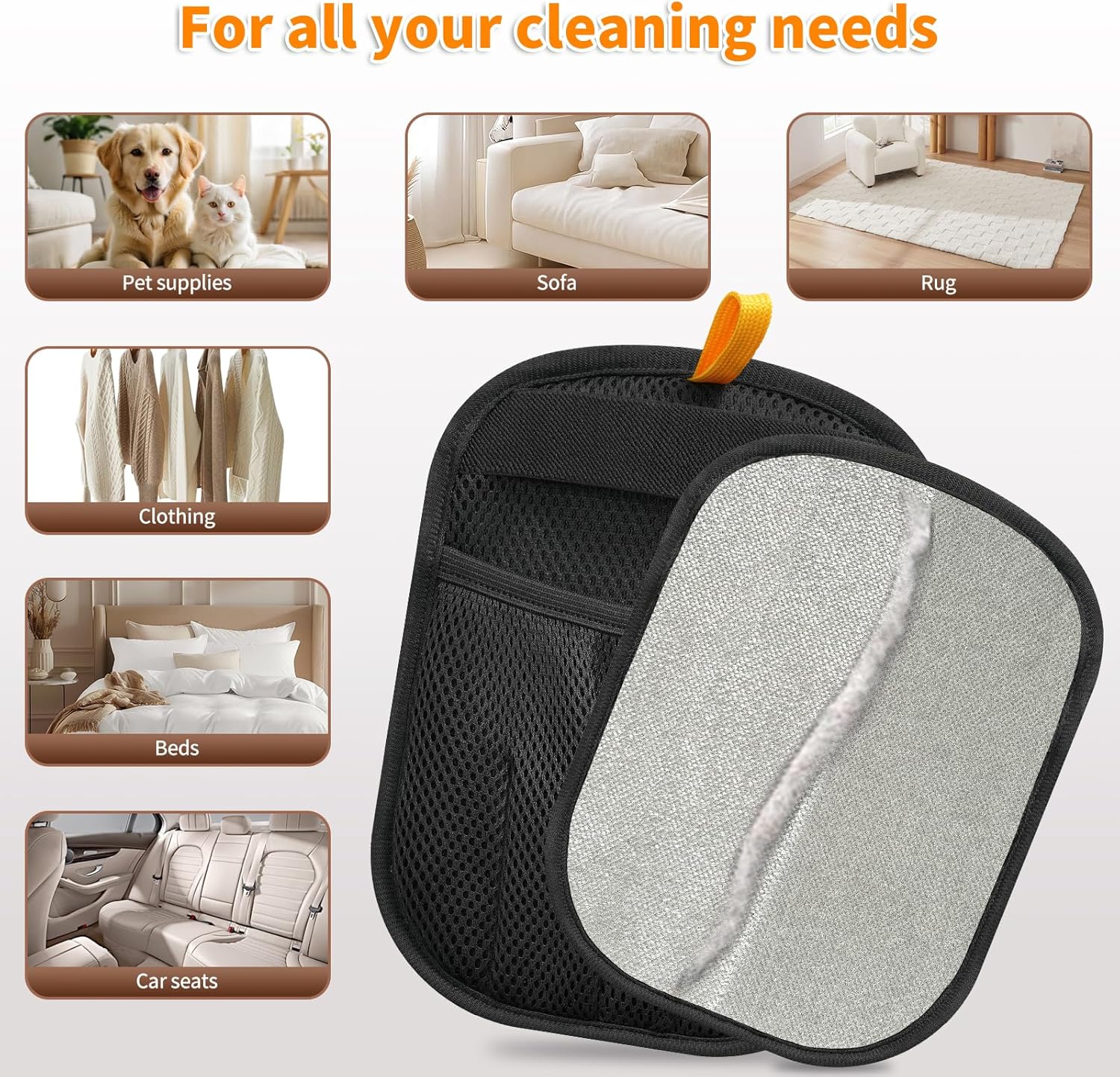 - 【Suitable for Any Fabric Surface】Whether used on clothes, beds, sofas, carpets, or car seats, these cat hair removal gloves work on almost any fabric surface. No more tedious rolling or spot cleaning—just slide your hand and witness the magic! Designed for multiple surfaces, it’s your go-to tool for all hair removal needs.