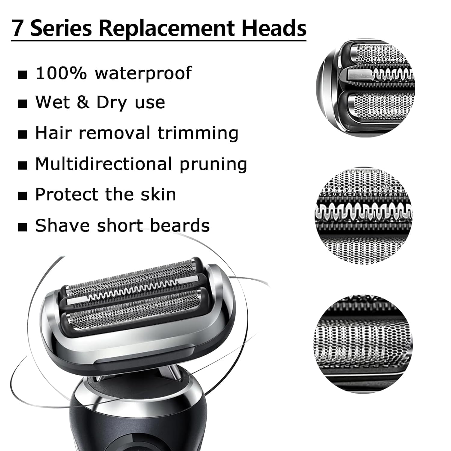 - NEW UPGRADE: 73S replacement head for braun s7 features a precision cutting system that captures whiskers that grow in different directions, even in hard-to-shave areas such as the jawline and neck. While reducing skin friction, it makes every shave an efficient and comfortable experience.
