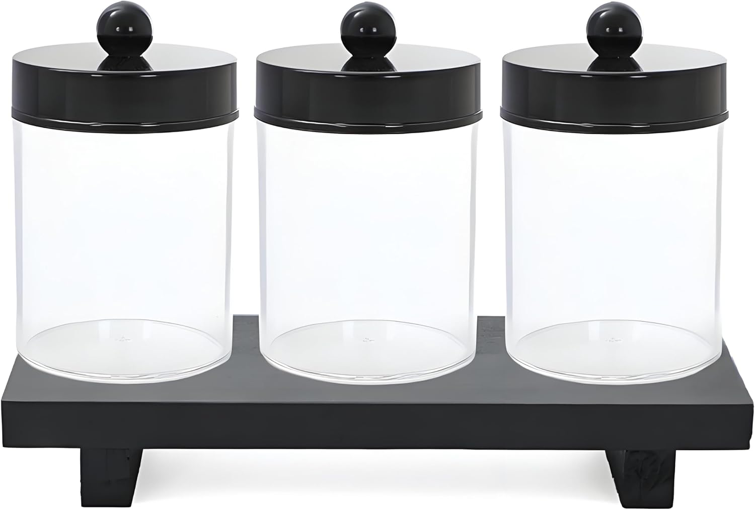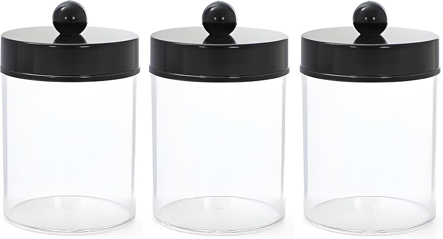 AXX Qtip Dispenser Apothecary Jars Bathroom - Qtip Holder Storage Canister Clear Plastic Jar for Cotton Swab,Q-Tips,Cotton Rounds (G#Black 4Pcs)