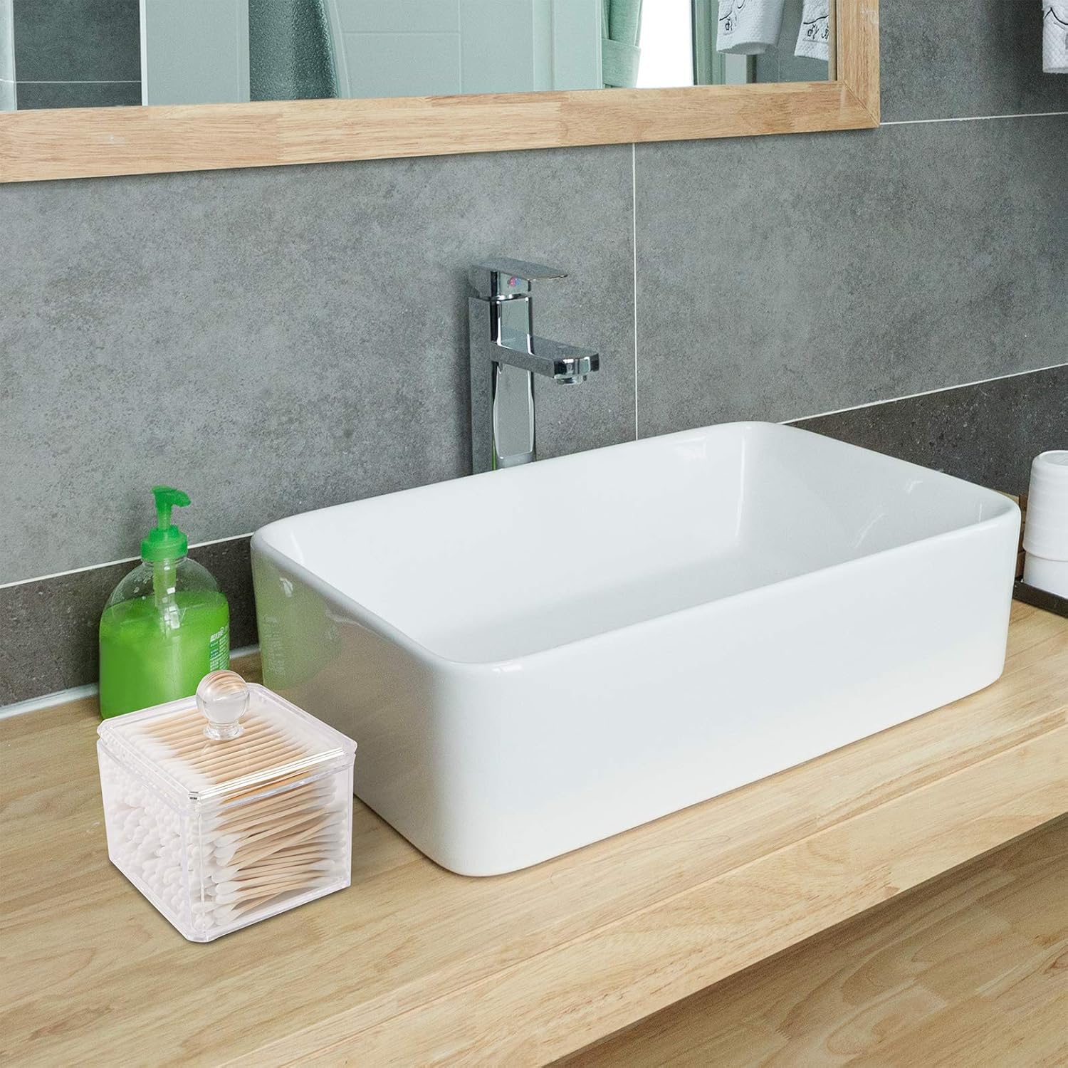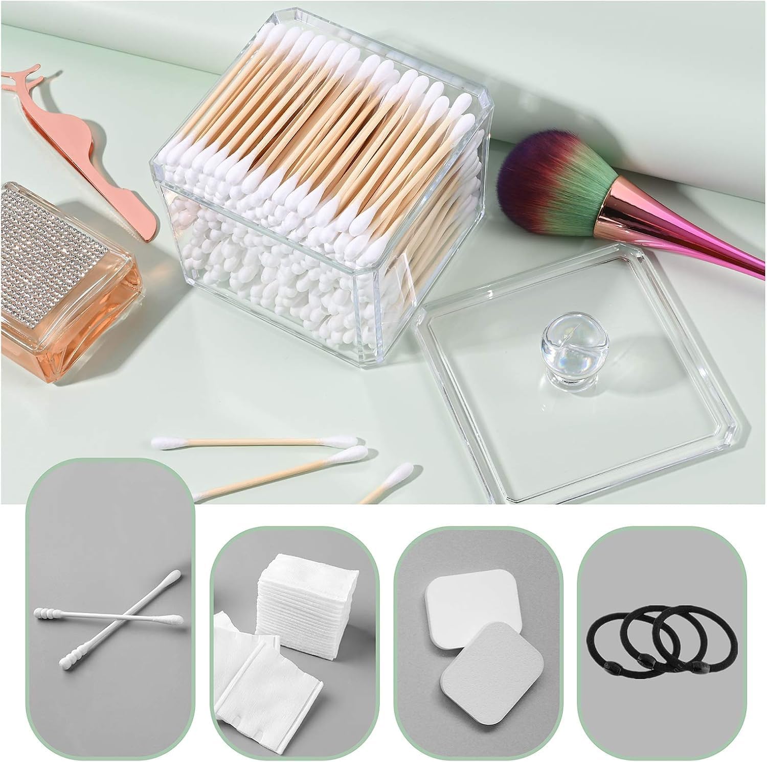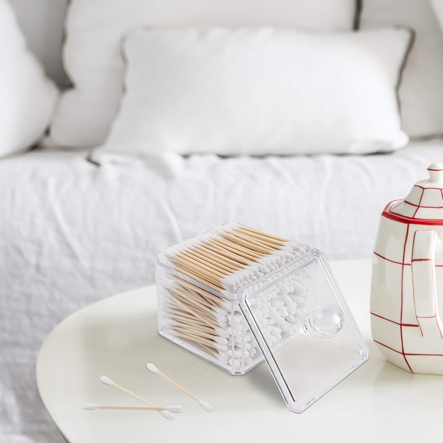 - Spacious Storage: With a capacity to hold approximately 130 q-tips, this dispenser ensures ample storage for your bathroom necessities