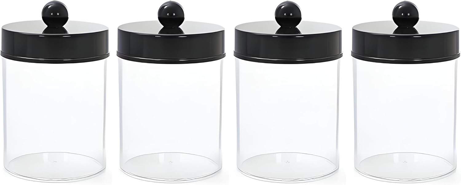 AXX Qtip Dispenser Apothecary Jars Bathroom - Qtip Holder Storage Canister Clear Plastic Jar for Cotton Swab,Q-Tips,Cotton Rounds (F#Black 4Pcs)