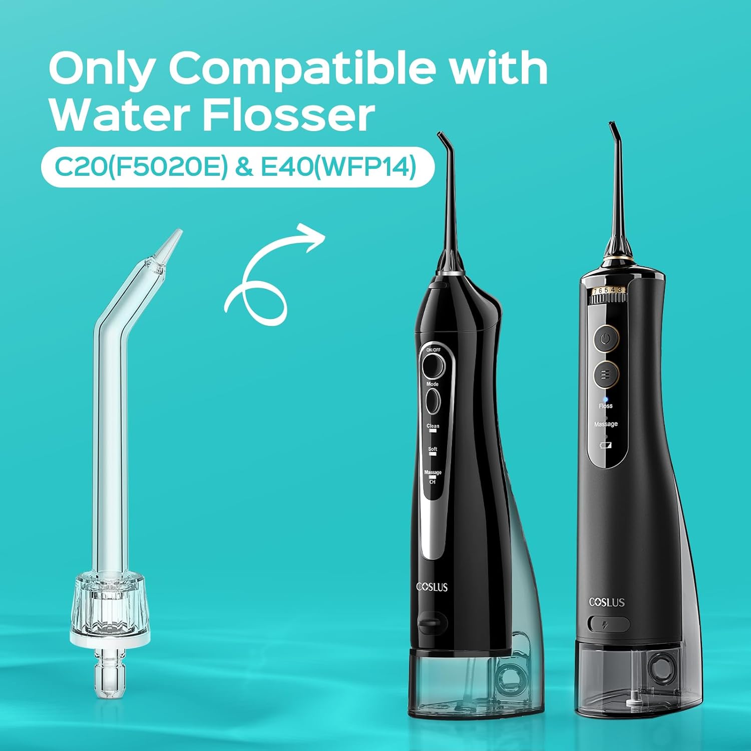 - Widely Compatible: COSLUS original water flosser replacement tips are designed to work seamlessly with COSLUS models C20 (F5020E), E40 (WFP14), C31 (F5023), C50, and C51. They also offer extensive compatibility with other major brands, including Nicwell F5025, Oralfree F5025, Aquasonic, HANGSUN HOC460P-US, TOVENDOR, and Sonicflosser