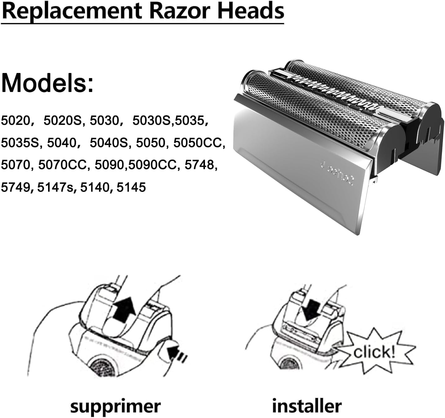- BROAD COMPATIBILITY: 52S Replacement Head is compatible with Braun shaver series 5 : 5020, 5020S, 5030, 5030S, 5035,5035S, 5040, 5040S, 5050, 5050CC, 5070, 5070CC, 5090, 5090CC, 5748, 5749, 5147s, 5140, 5145