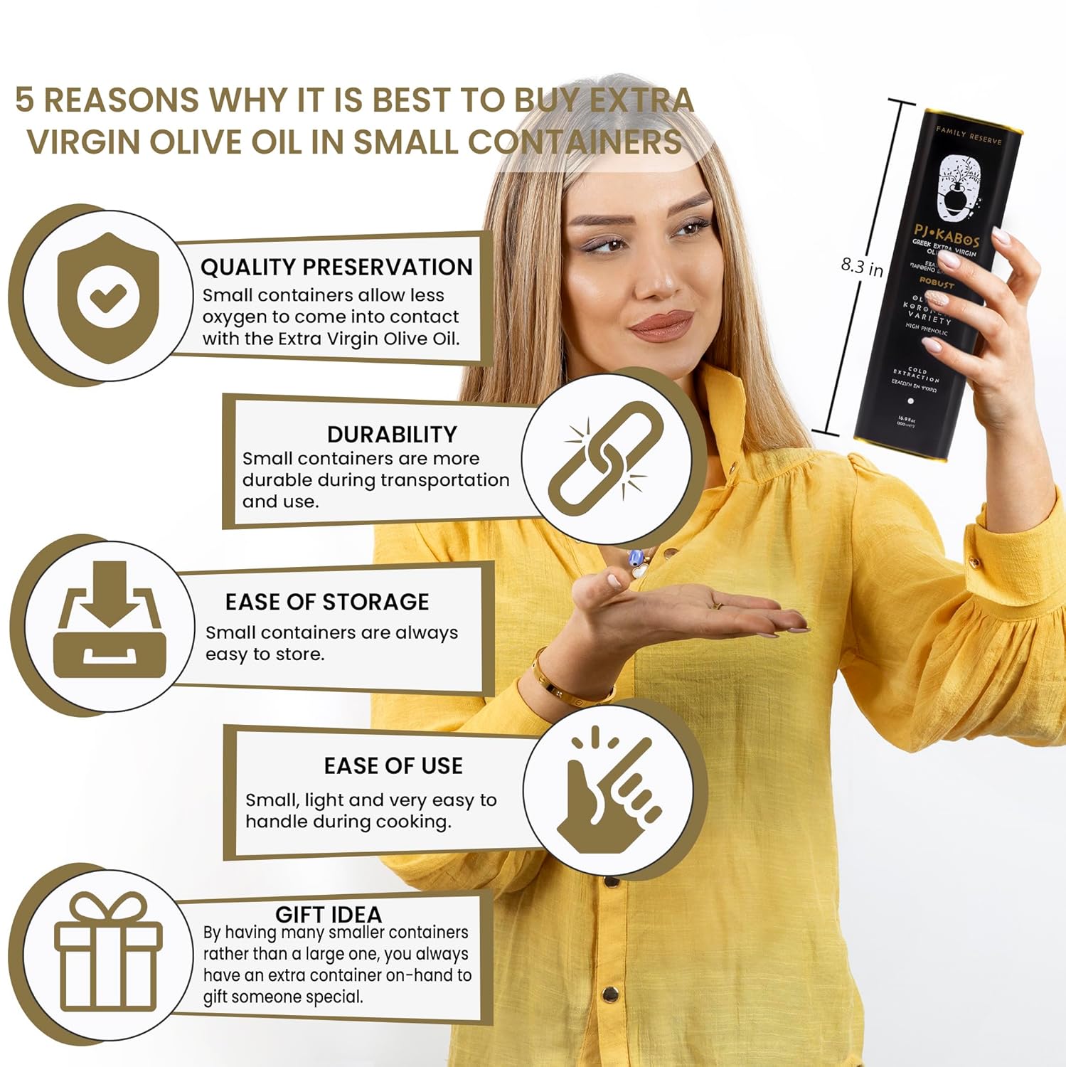- 2024/25 Fresh Harvest, ultra-premium, clean taste, hand harvested in October of 2024 (the olive harvest season lasts from September to February of every year, and is named after the new year). Comes in three elegant 16.9 fl oz tins which is easy to store, easy to handle (you donât need a dispenser bottle or sprayer as it has a great pouring spout). Great business or personal gift idea. Best Before June 2026.