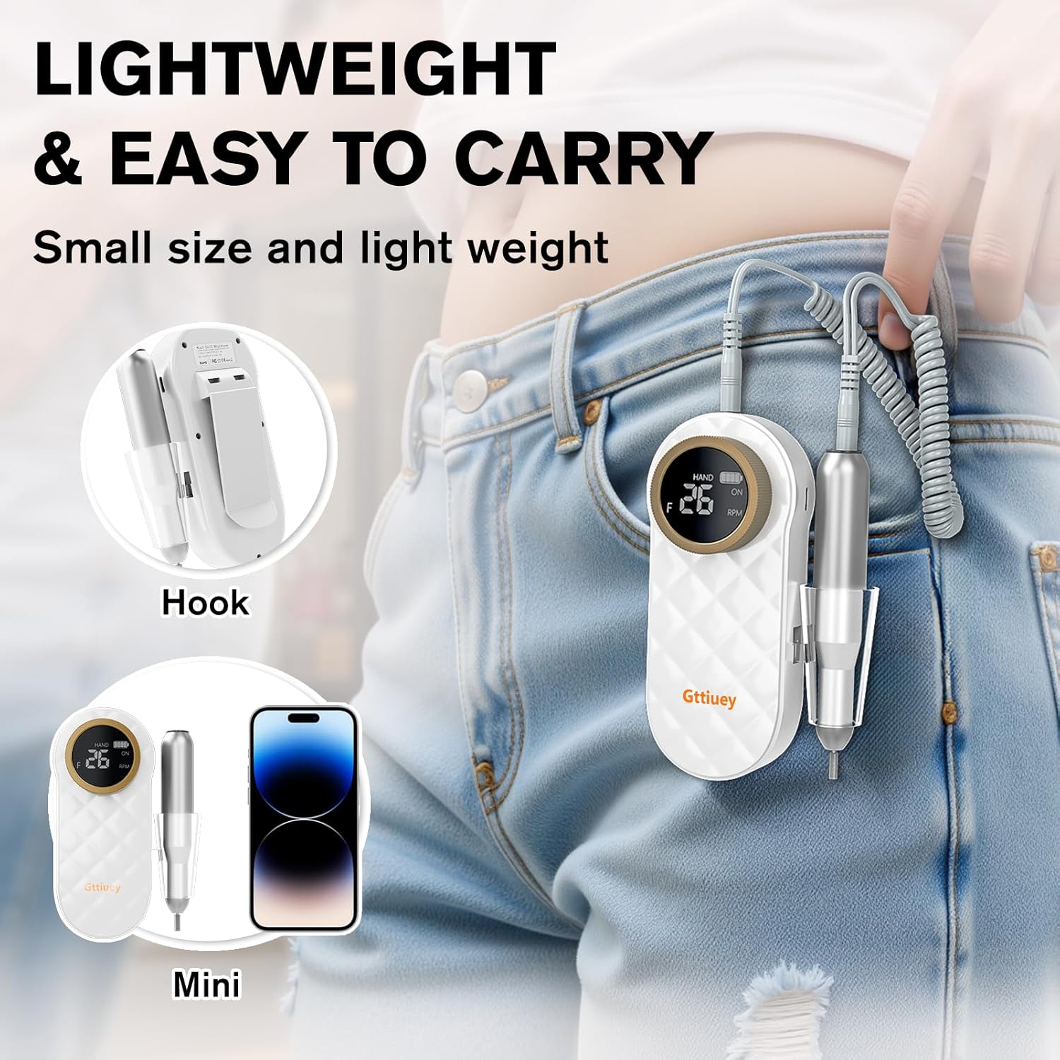 Electric Nail Drill, 35000RPM Nail Drill, Professional Rechargeable Nail File for Acrylic Nails Gel Polishing Removing,Efile Nail Kit for Manicure Salon Home