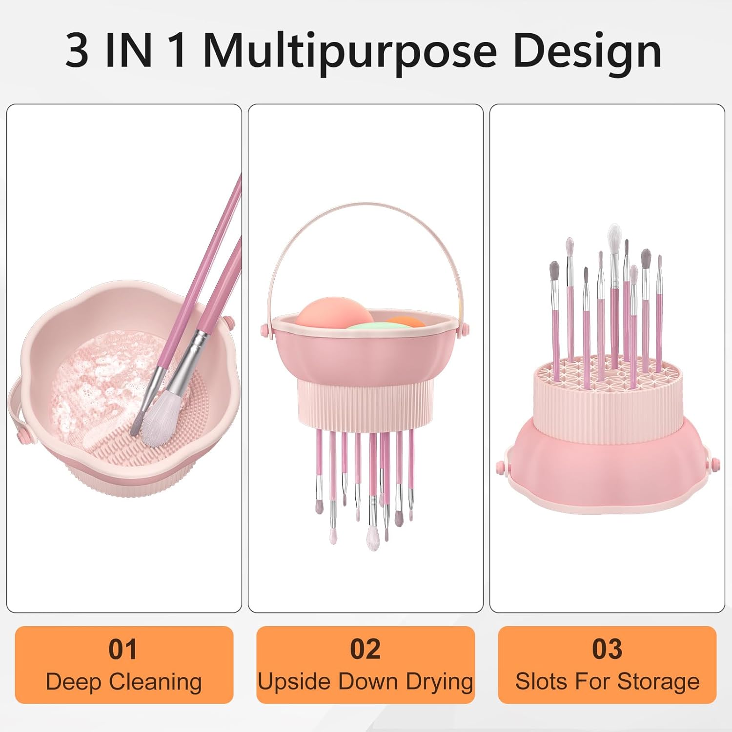 - 【Beauty tips】 It’s recommended to clean makeup brushes once every two to four weeks.Since all beauty sponges and power puff touch your skin directly and causing some skin problems.With our senbowe 3 in 1 makeup brush cleaning bowl, it can help clean and dry your makeup brushes powder puffs, makeup brushes, beauty sponges or upside down as a makeup brush holder to meet your storage needs. Great for home use and travel use.