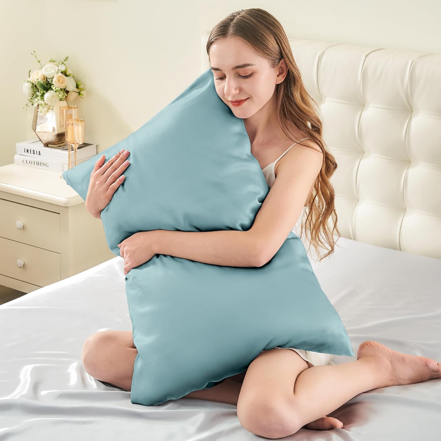INFIIXSO Mulberry Silk Pillow Cases King Size Set of 2, Silk Pillowcase with Hidden Zipper 20"x36", Extraordinary Smooth and Soft Pillow Case for Hair and Skin(Haze Blue, 2 Pack)