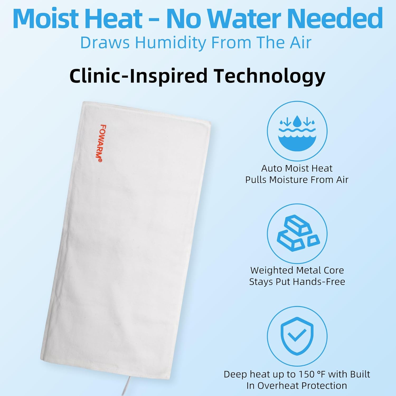 - Moist Heat Technology for Deep Penetration: The ultra-soft removable cover draws moisture from the air to create therapeutic steam, offering deeper relief than dry heat padsâideal for chronic pain, period cramps, and muscle soreness.
