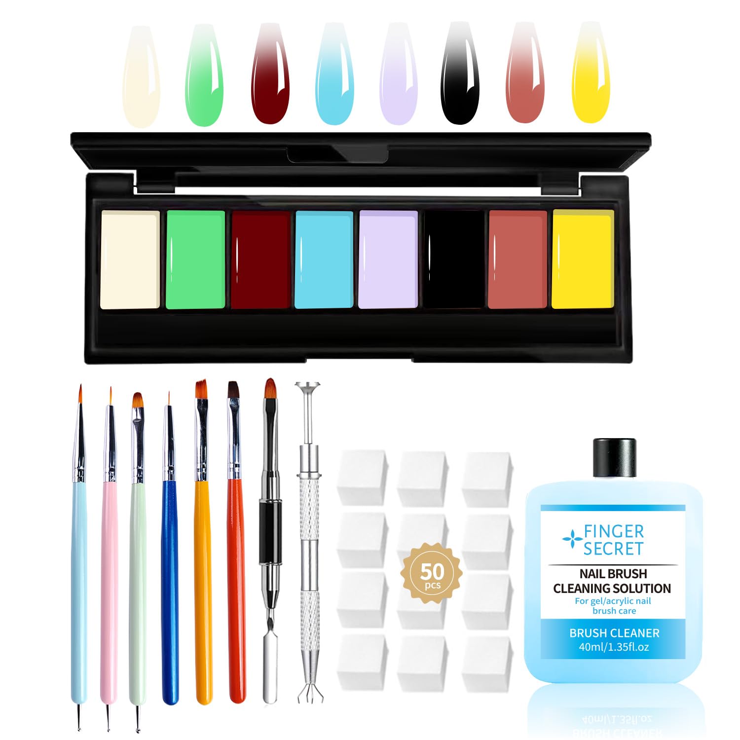 - Finger Secret Ombre Gel Polish:The omber gel colors set include 1* finger secret 8 color ombre gel pat come with 50 pcs sponge+ 1*cotton claw+1*Double-headed pen+ 6-color phototherapy pen & dot drill brush set +1*40ml nail brush cleaning remover meets the nail art needs of different scenarios. Moreover, the ombre gel nail polish set is lightweight and portable, allowing you to have shiny nail art all the time.