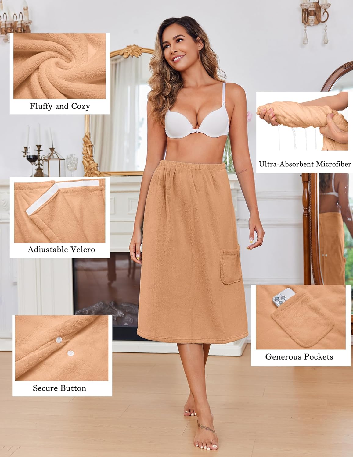 • 【Versatile 3-in-1 Design: Wrap, Robe & Cover-Up】More than just a shower wrap, this stylish piece functions as a bath robe wrap, a bath wrap dress, and even a chic poolside swim after wrap cover-up. Whether you're lounging at home or traveling, this wrap towel for women blends comfort and elegance effortlessly.