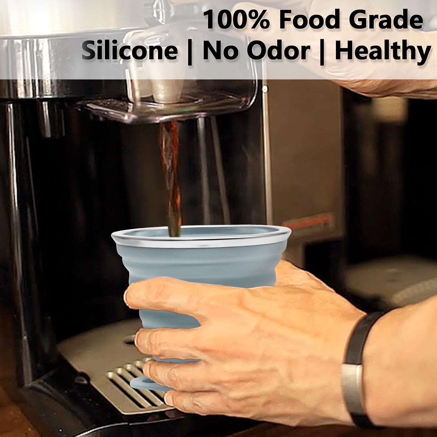 - Folding & Portable: The travel cup is foldable and very portable(only 0.59In when collapsed). Suitable for outdoor hiking and can be put in the pocket or backpack.