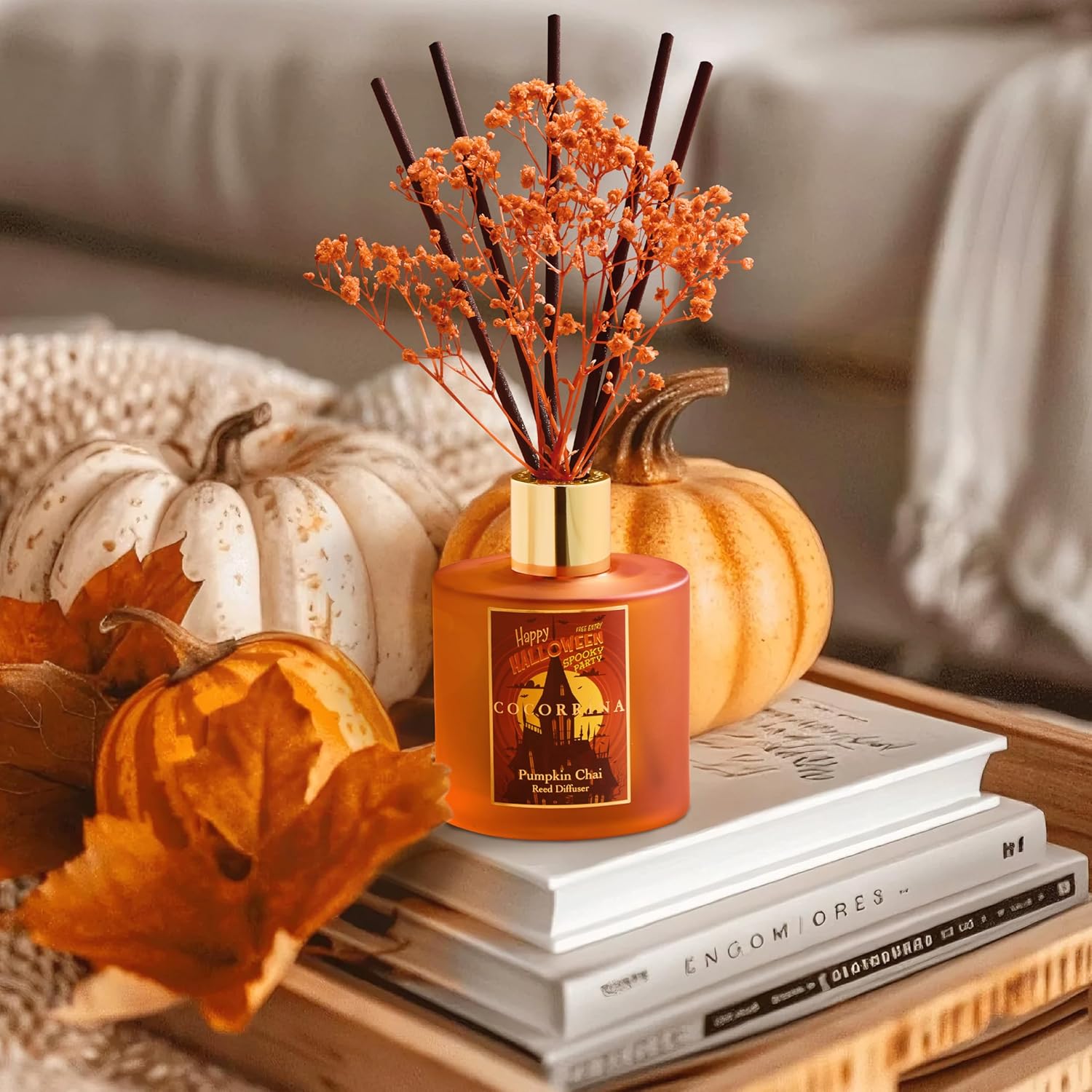 COCORRÍNA Reed Diffuser - Pumpkin Chai 6.7 fl oz Scented Diffuser with 8 Sticks Home Fragrance Bathroom Shelf Decor (Halloween Collection)