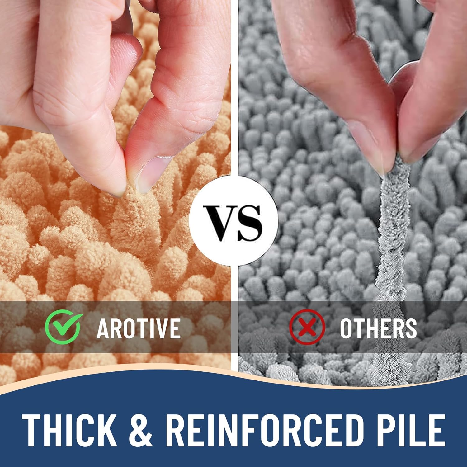 - Anti-Skid Backing: Arotive chenille bathroom rugs feature a non-slip bottom consisting of sturdy mesh PVC material that stops the bath mat from shifting and skidding. The middle layer is 4 mm memory foam, which can let you feel more comfortable when wrapping into the rugs. WARNING: Place bath mat on CLEAN DRY FLAT FLOOR ONLY. Water under bath rug can cause it to slip. Always keep the bottom of bath rug dry