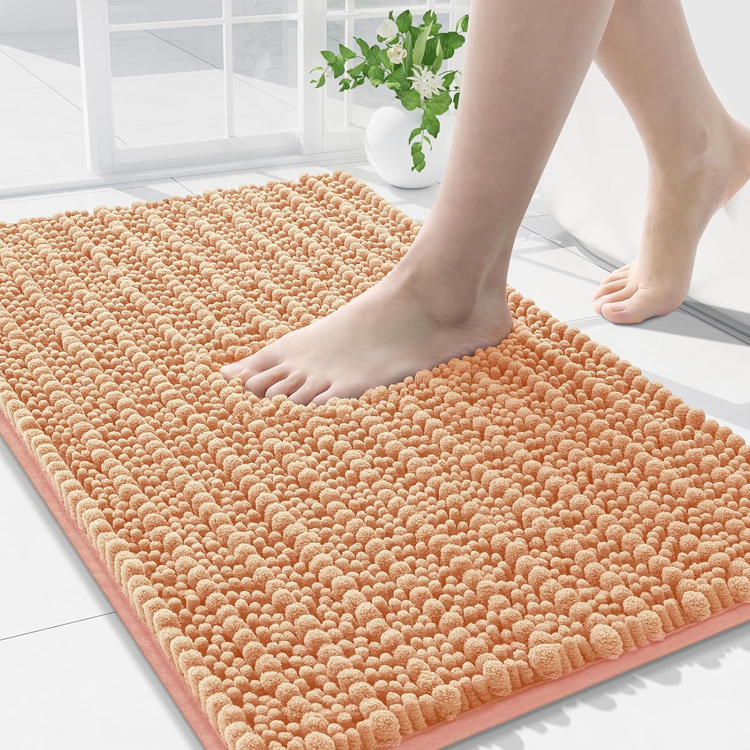 Arotive Luxury Chenille Bathroom Rug Mat, Extra Soft Thick Absorbent Shaggy Bath Rugs, Non-Slip Machine Wash Dry, Plush Bath Mats for Bathroom, Shower and Tub, 36x24, Peach