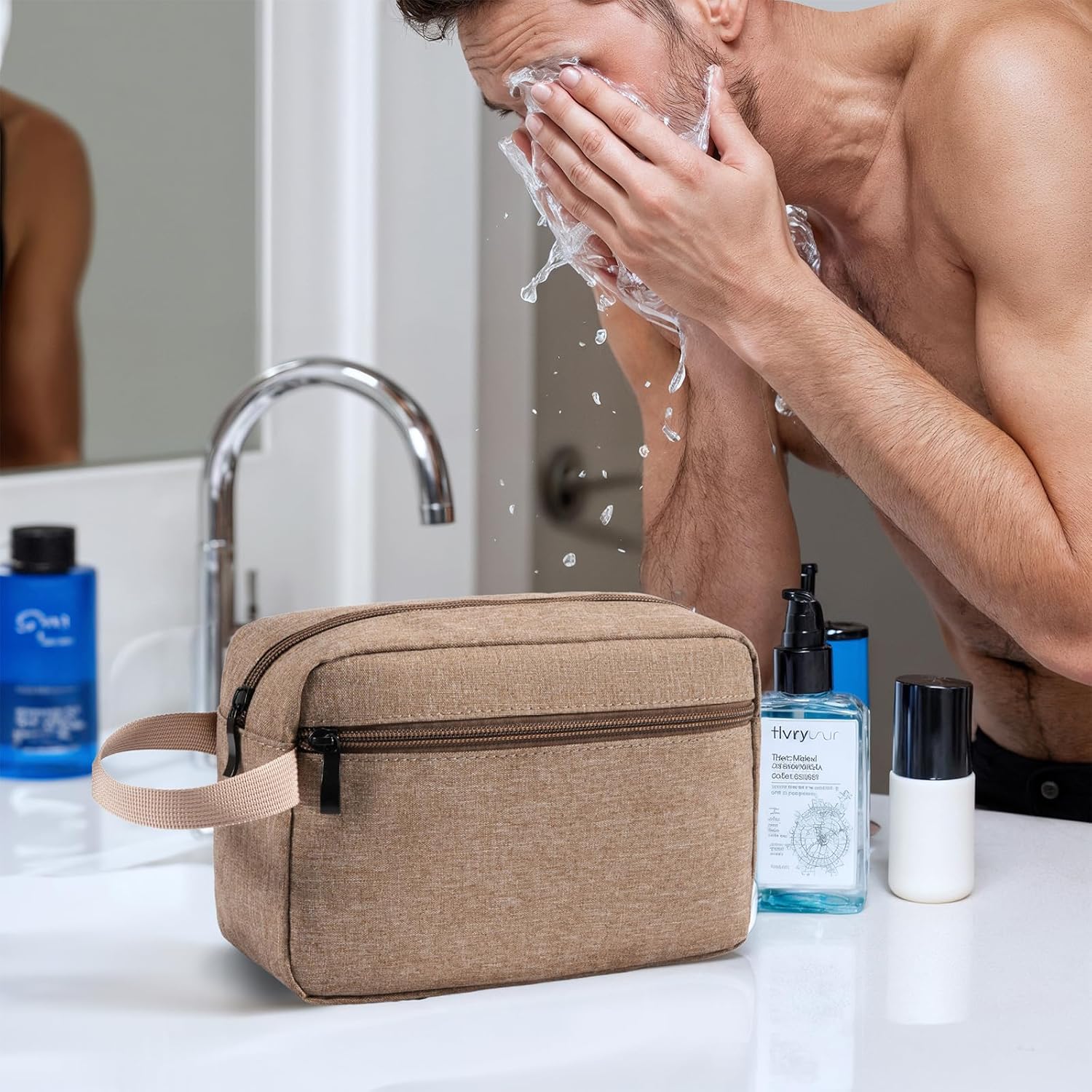 Travel Toiletry Bag, Hanging Water-Resistant Organizer for Men & Women, Ideal for Makeup, Shaving Kit, Gym Essentials & Travel Accessories (Camel)