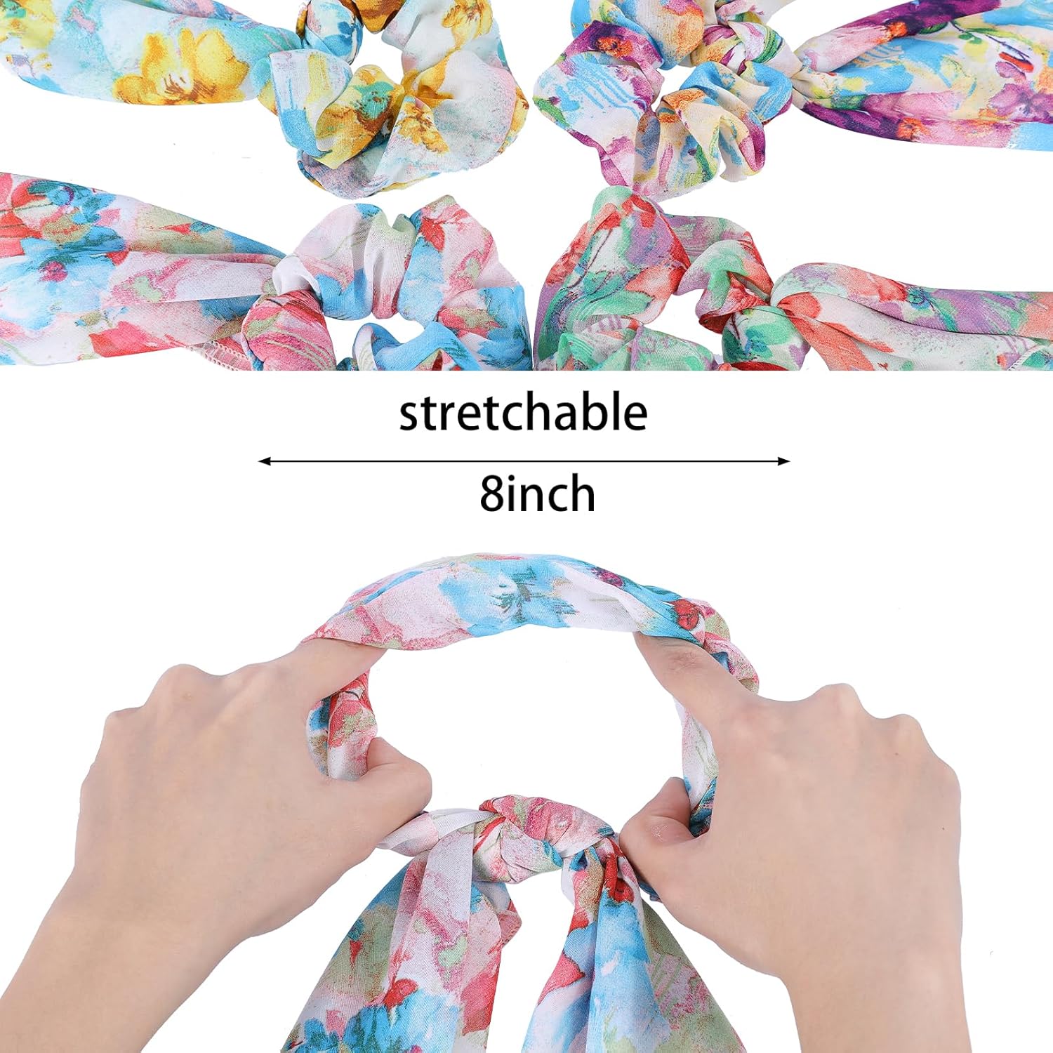 - 6 colors:6pcs tie dye flower pattern scarf-scrunchies with different colors will provide you different accessories for dress-up and mood.