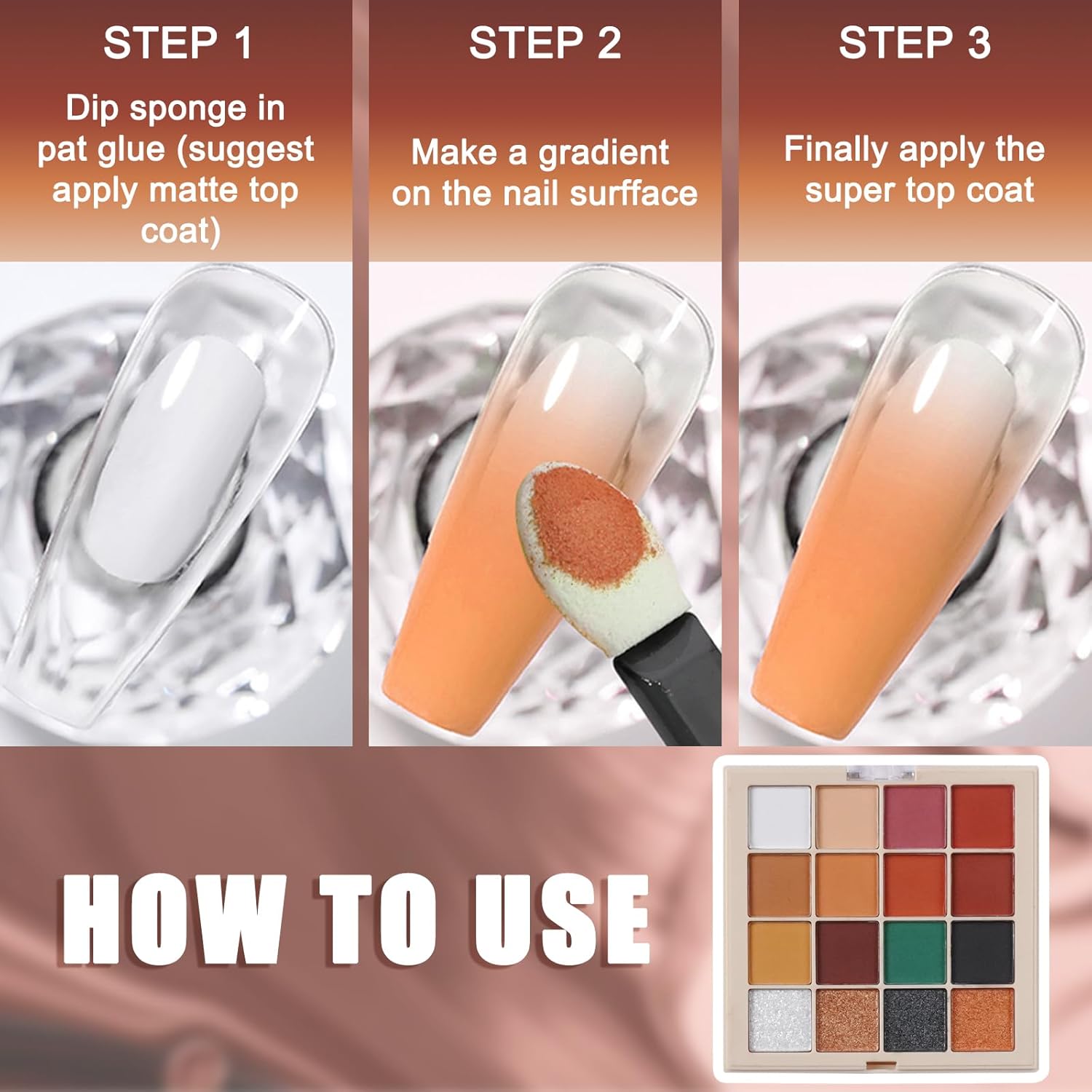 Nail Pigment Powder Palette, 16 Colors Orange Brown Fall Collection Solid Pigment Powder for Autumn Nails Set Pigmentos para Uñas, Nail Art Palette Manicure DIY Accessories