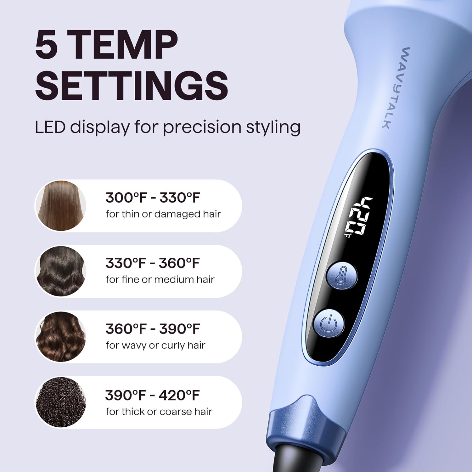 - 5 Temperature Settings & LED Digital Display: Wavytalk thermal round brush offers multiple temperature options, allowing better control during styling to achieve optimal results while minimizing heat damage. 300â/330â for thin or damaged hair; 360â for normal hair; 390â/420â for thick or coarse hair.