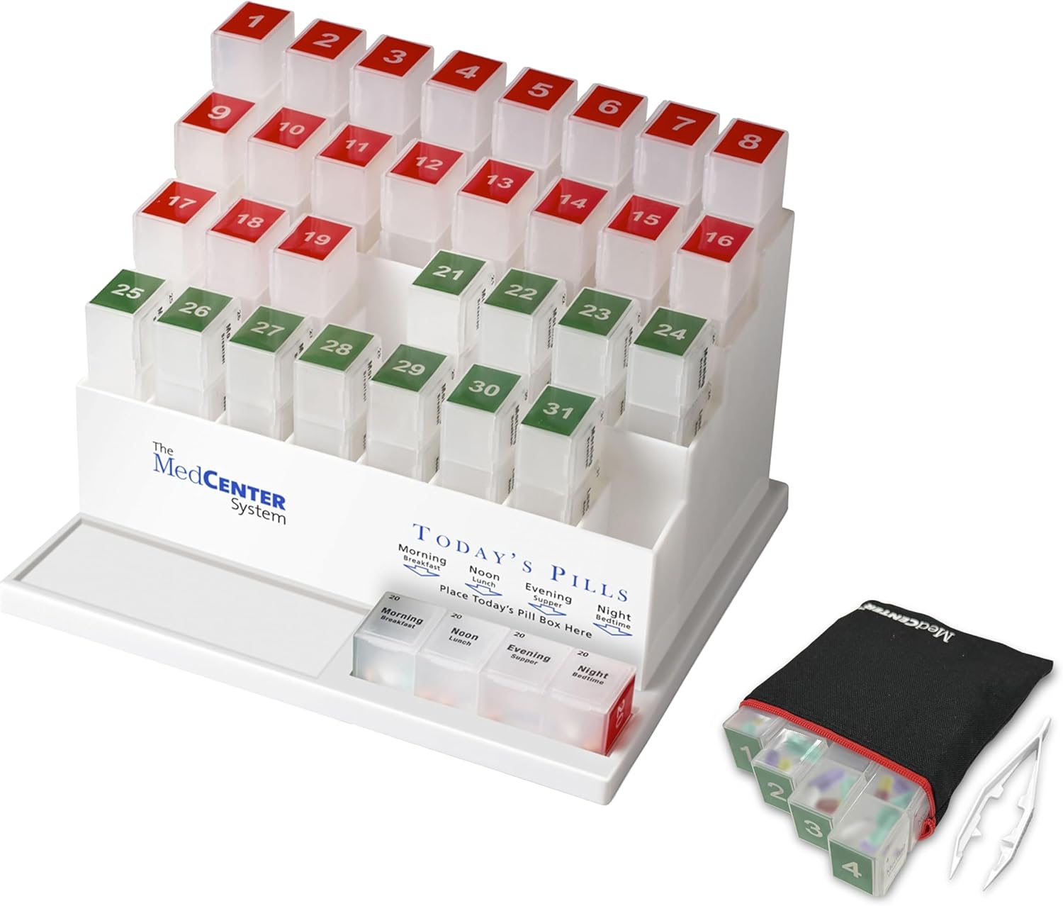 - ✅ Labeled & Color-Coded – Each pill container is divided into 4 time slots (Morning, Noon, Evening, Bed) for easy dose tracking.