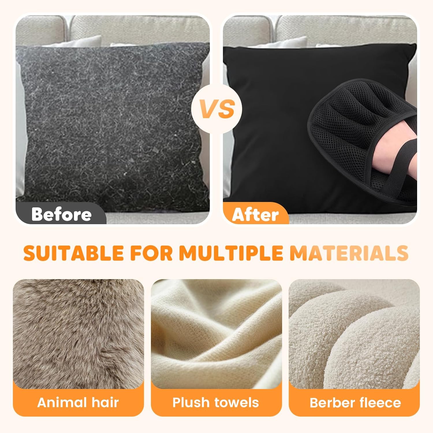 • 🐱【Efficient Hair Removal for Multiple Surfaces】Glove-style design, flexible to use, easy to comb pet hair, easy to remove loose hair.Perfect for sofas, cushions, and other fabric surfaces, making pet tidy simple and efficient.Its double-sided grooming design covers large areas quickly, making cleanup of cat and dog hair fast and simple for any home or car environment.
