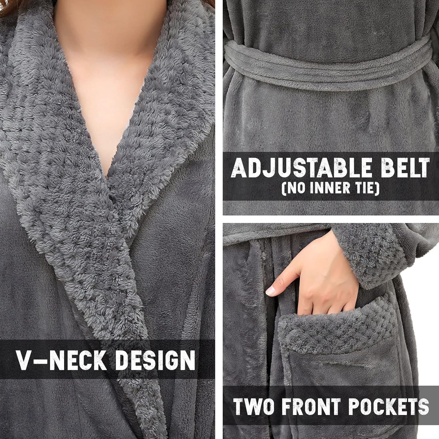 • Flush Fleece Robe: the premium polyester fleece bathrobe for women, this warm and lightweight night gown for women making you feel soft and comfortable when u lounging or sleeping at home.