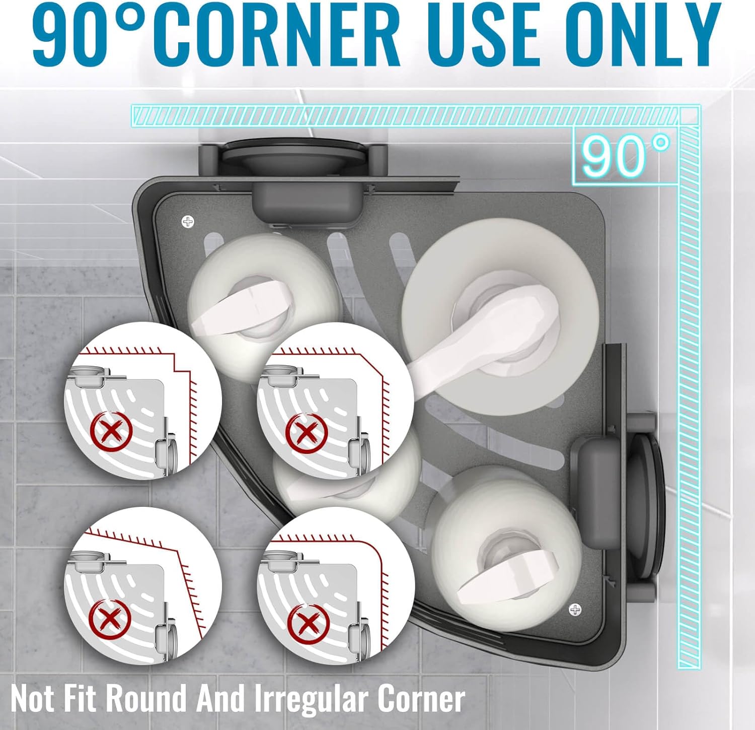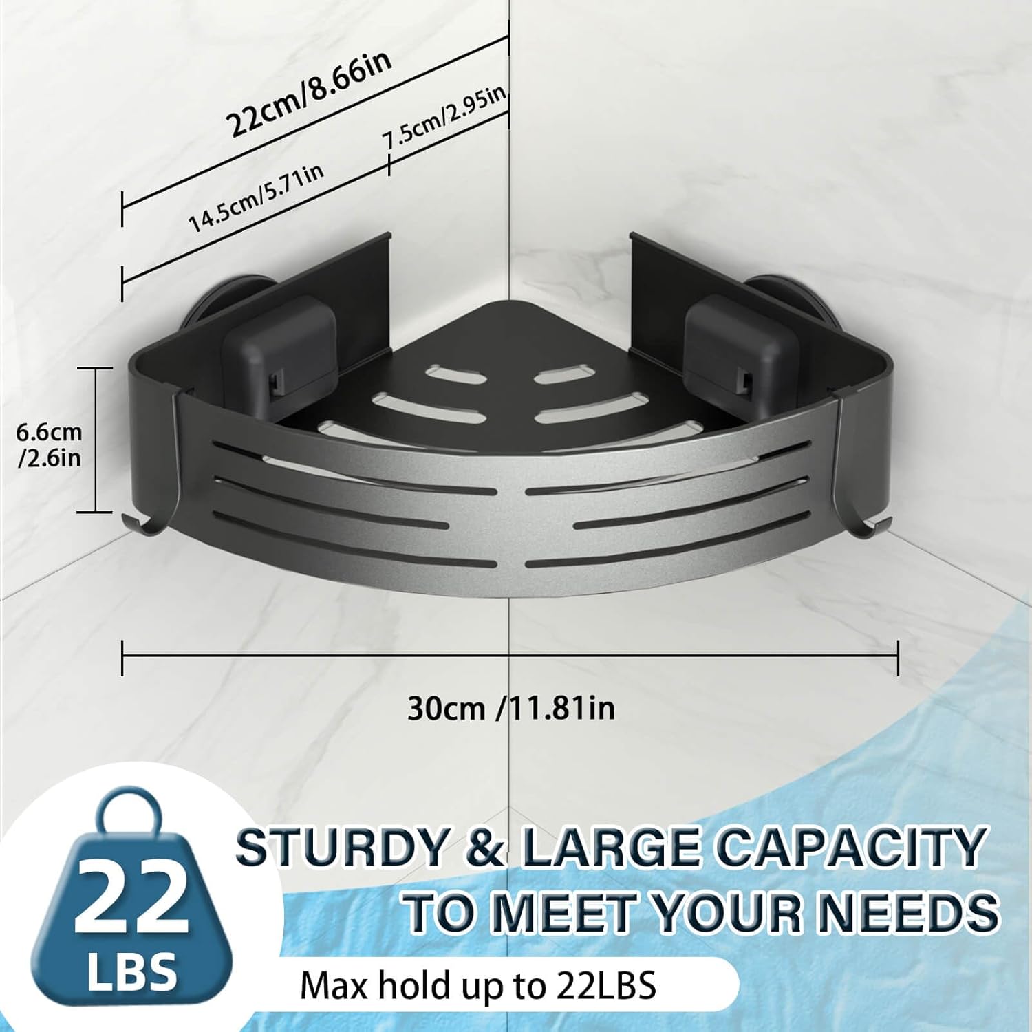 - One-Second Installation: This Corner shower caddy suction cup requires no drilling, screws, holes, or glue, making installation quick and hassle-free. Attach it to smooth, clean, dry, flat, and non-porous surfaces. Remove the protective film, open the buckle, press firmly against the wall, and close the buckle to ensure a secure hold. Note: Make sure the wall has no water stains and dirt before installation to ensure the best possible adhesion