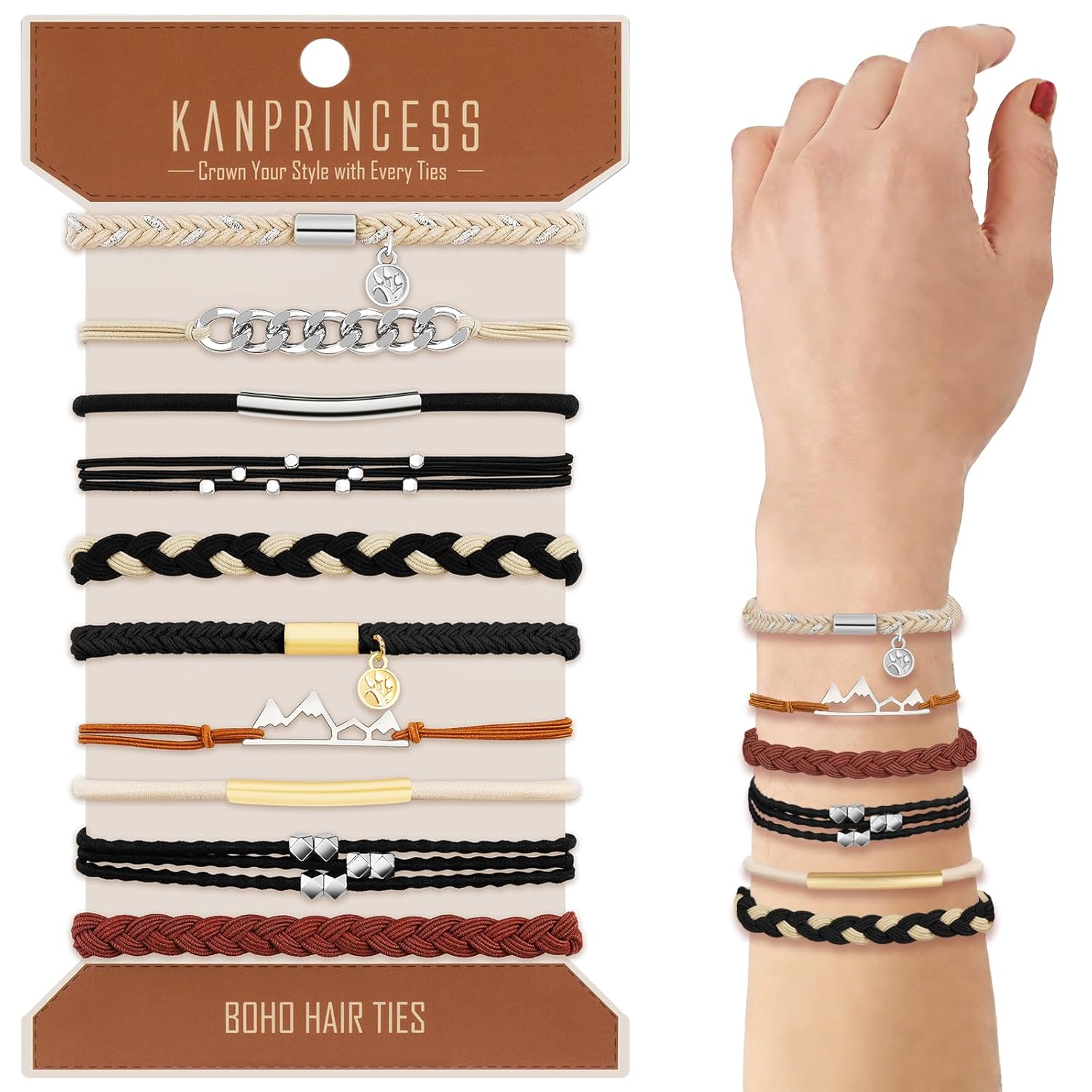 Hair Tie Bracelet, 10 Pcs Boho Hair Ties For Girls and Women, Elastic Hair Ties, Hair Bands For Ponytails, Ponytail Holder For Daily Life, Sport, Cooking, Working (Set 12)