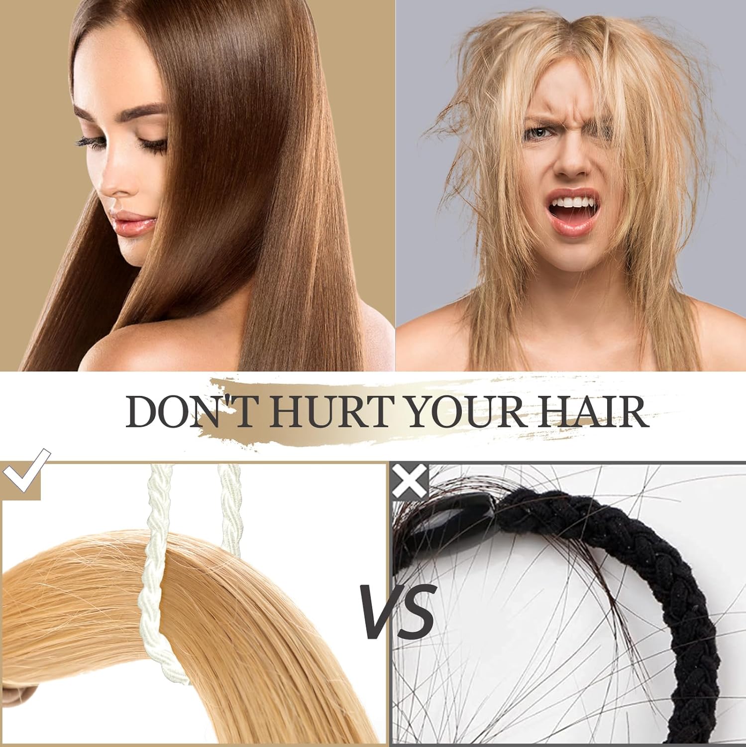 - ②【Comfortable & No Damage】:These elastic hair ties are made of soft nylon cotton, hair ties no damage, soft and comfortable. You can wrap it around your ponytail two to three times so your hair stays securely in place. It won't rip your hair out when you pull out the ponytail.