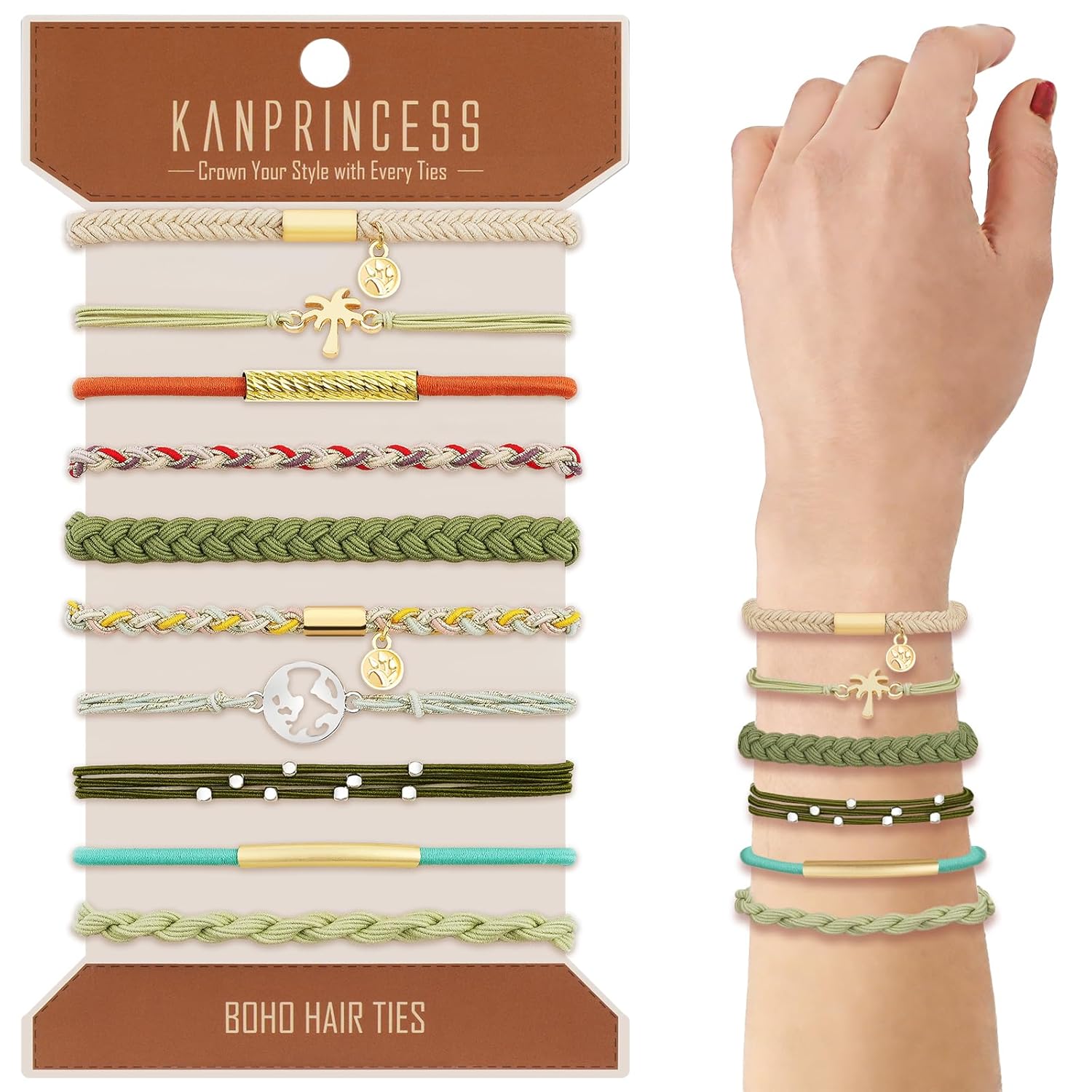 Hair Tie Bracelet, 10 Pcs Boho Hair Ties For Girls and Women, Elastic Hair Ties, Hair Bands For Ponytails, Ponytail Holder For Daily Life, Sport, Cooking, Working (Set 14)