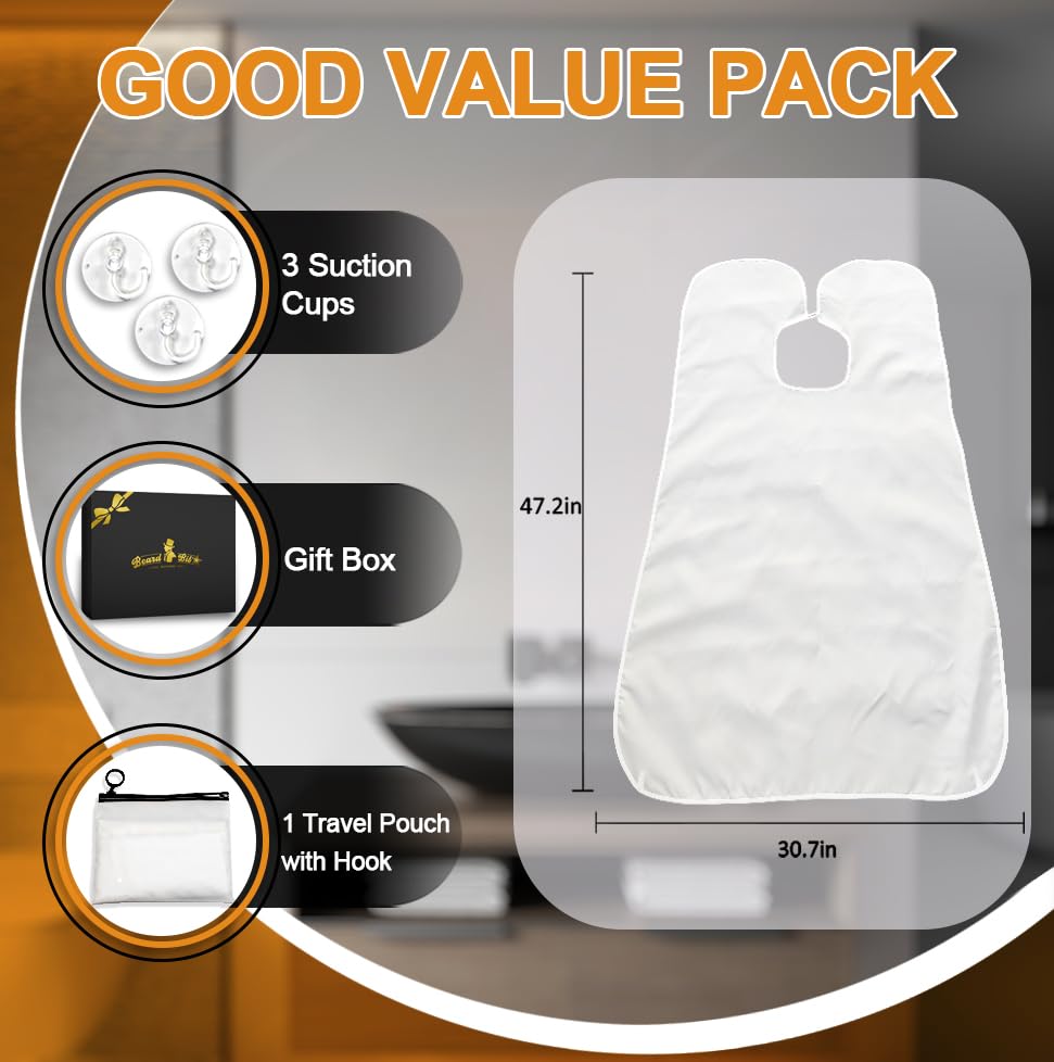 - Perfect Gift for Bearded Men: The shaving apron makes it easier for you when shaving. No more mess, no more clean. Keep the bathroom clean and tidy. Any man will love this beard bib.