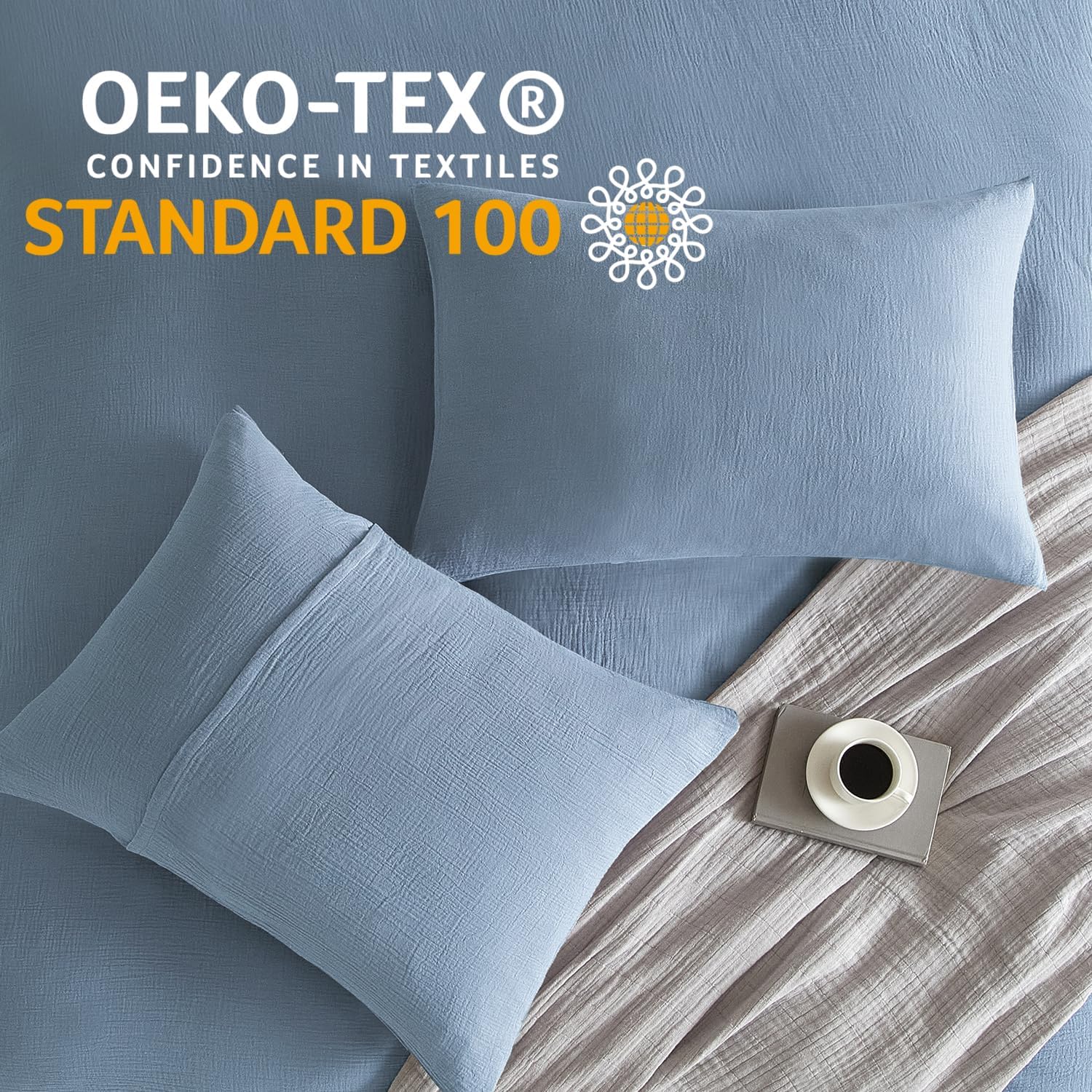 SE SOFTEXLY Muslin Pillowcases Standard Size 100% Cotton, 2 Pack Linen Like Pillow Shams with Envelope Closure, Ultral Soft and Breathable Pillow Case Covers, Blue, 20" X 26", No Filling