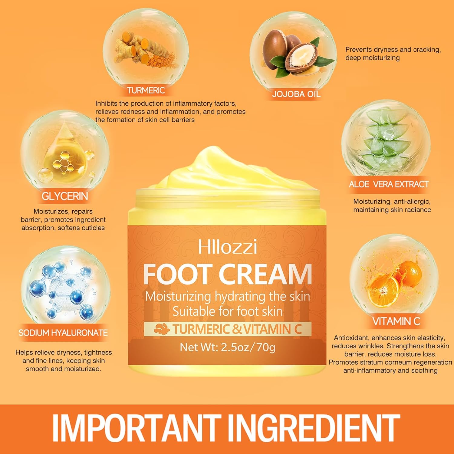 Turmeric & Vitamin C Foot Cream for Dry Cracked Heels and Feet, Ultra-Hydrating Softening Foot Cream, Moisturizes for Healthy Feet, 2.5 oz