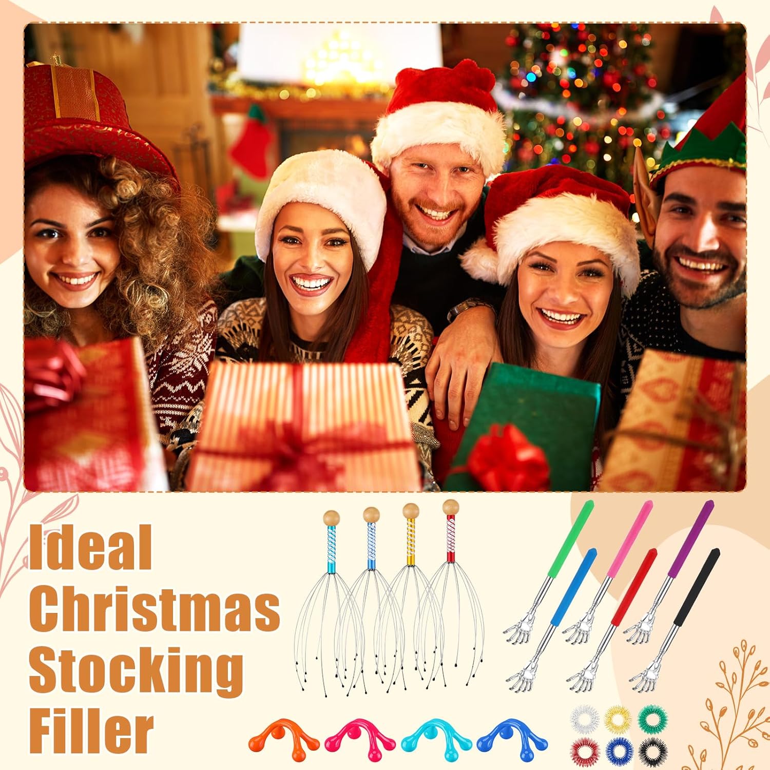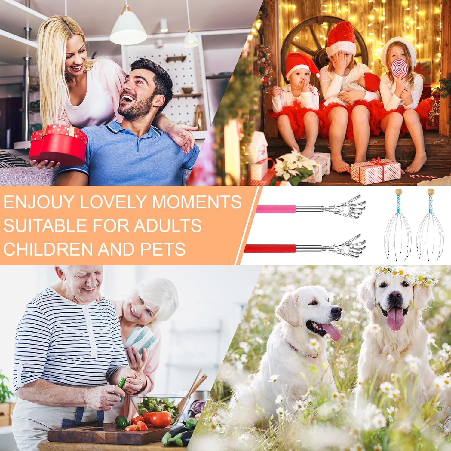 Geiserailie 48 Pack Head Scratcher Scalp Massagers, Extendable Back Scratchers, Four Point Massage Tools, Finger Massager Rings for Deep Relaxation Stress Relief Hair Stimulation Men Women Adult Gifts