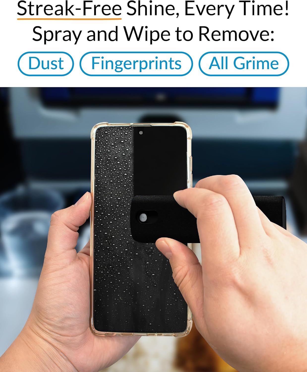- STREAK-FREE & SMUDGE-RESISTANT – Our fine mist spray effortlessly removes dust, fingerprints, and oily smudges without leaving streaks, keeping your screens spotless and looking like new. Perfect for phones, tablets, laptops, monitors, and car screens.