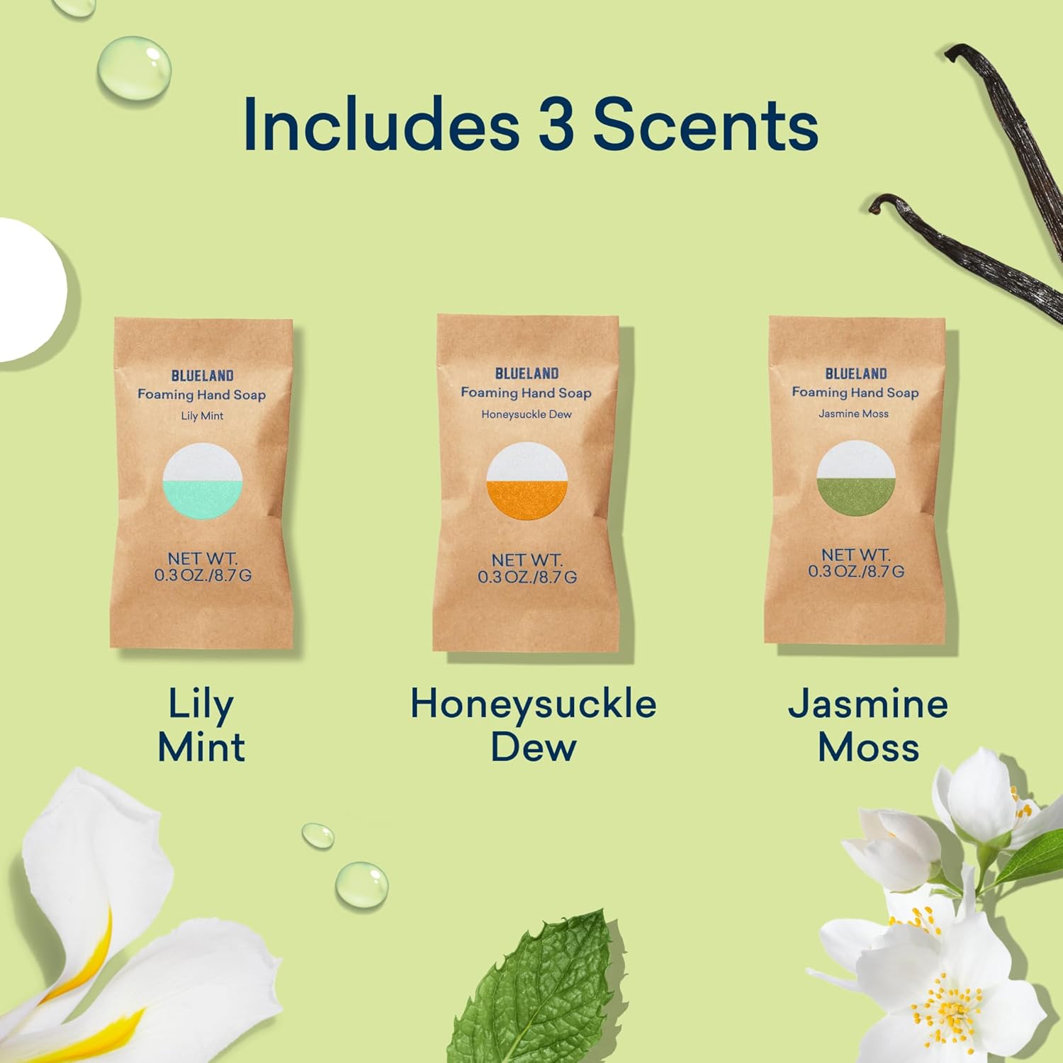 BLUELAND Foaming Hand Soap Refill Tablets, 10-Pack, Garden Blooms Variety Scents, Eco Friendly Cleaning Products, 10 x 9 Fl oz