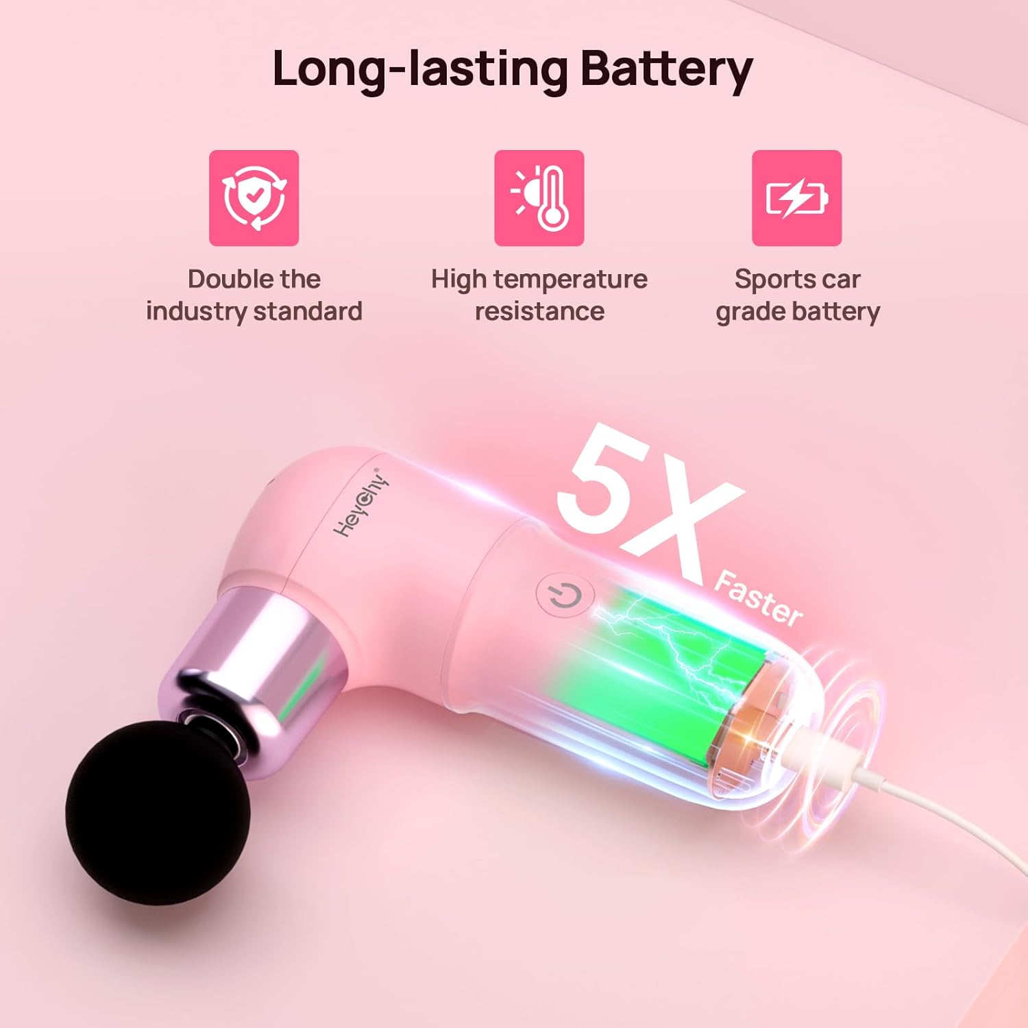- [Mini Pocket Design] Our mini massage gun features an ergonomic L-shaped design and a skin-friendly feel that's sure to please. Weighing only 0.6 pounds, it's easy to carry around, whether at the gym, at the office, or while traveling. It slips easily into bags and pockets for a relaxing massage.