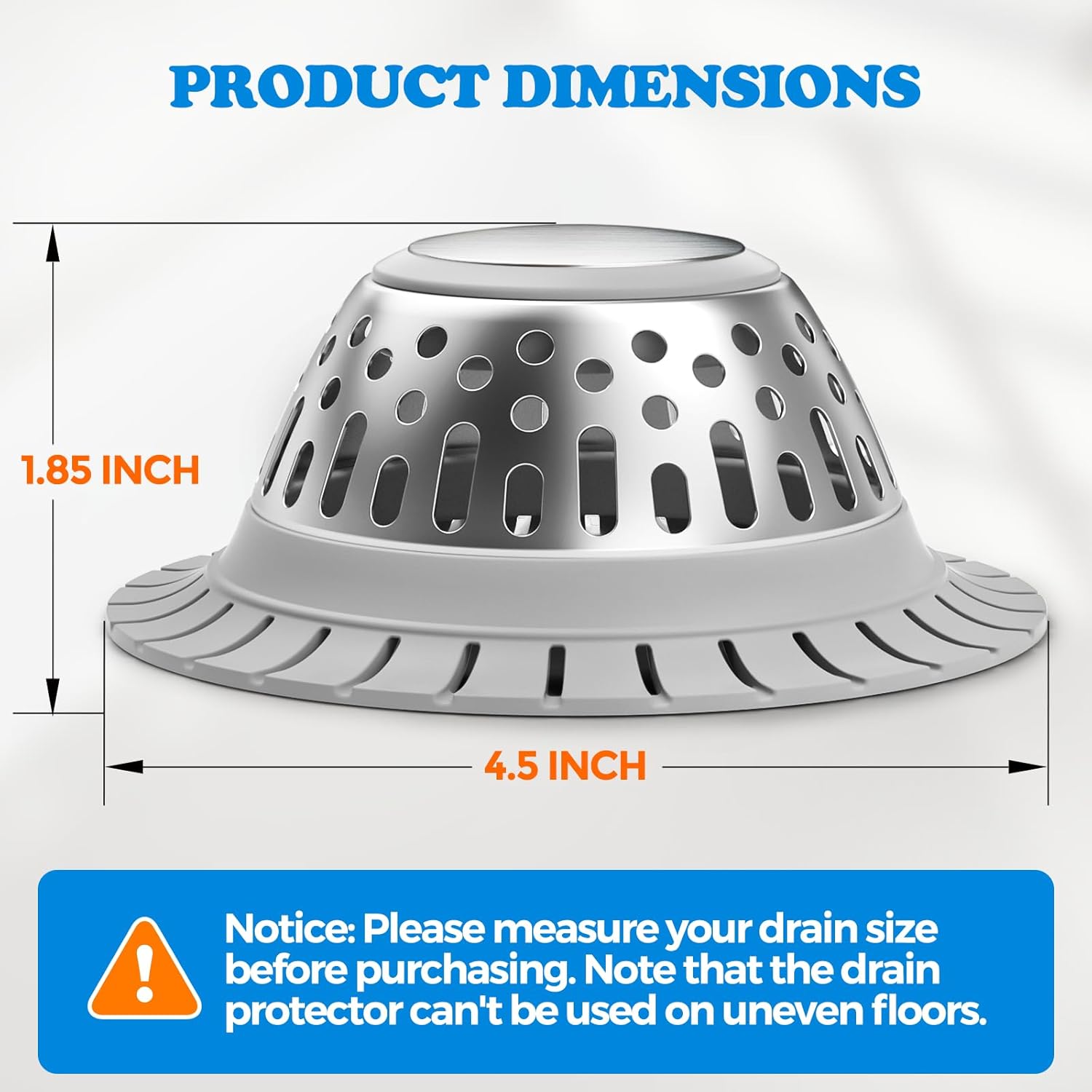 - 【Dome Shaped - Fit Pop up & Flat Drains】Our shower drain hair catcher, its outer diameter measures 4.5'', fit most US standard drains